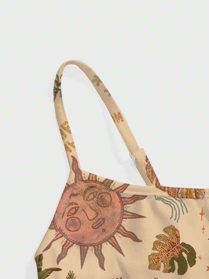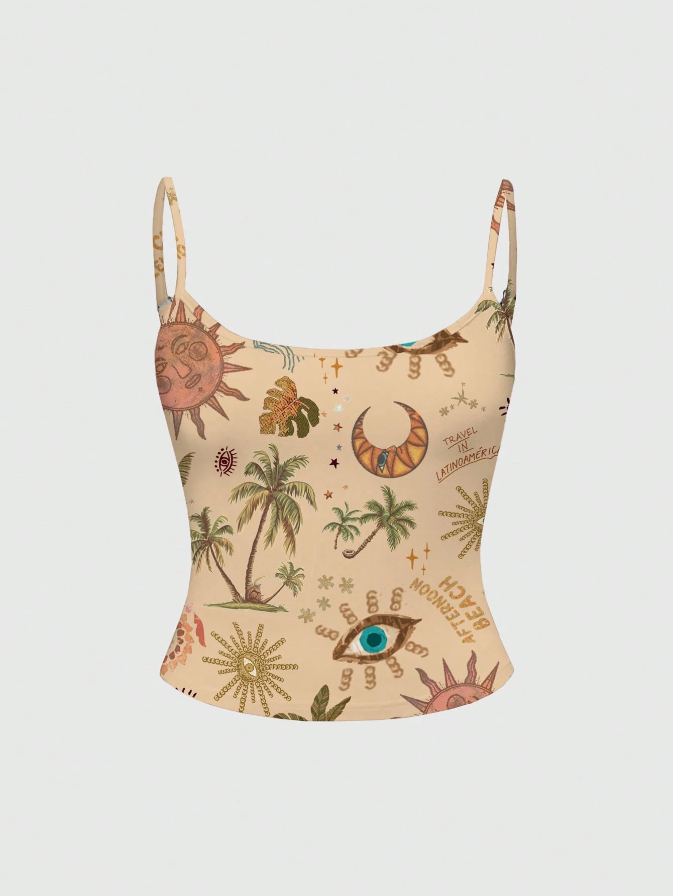 Fairycore Hippie Vacation Sexy Lady Sun Moon Star Coconut Tree Sun Women Camisole