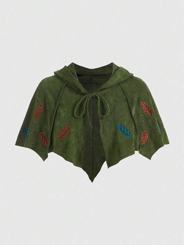 Fairycore Leaf Embroidery Crop Costume Hooded Cape