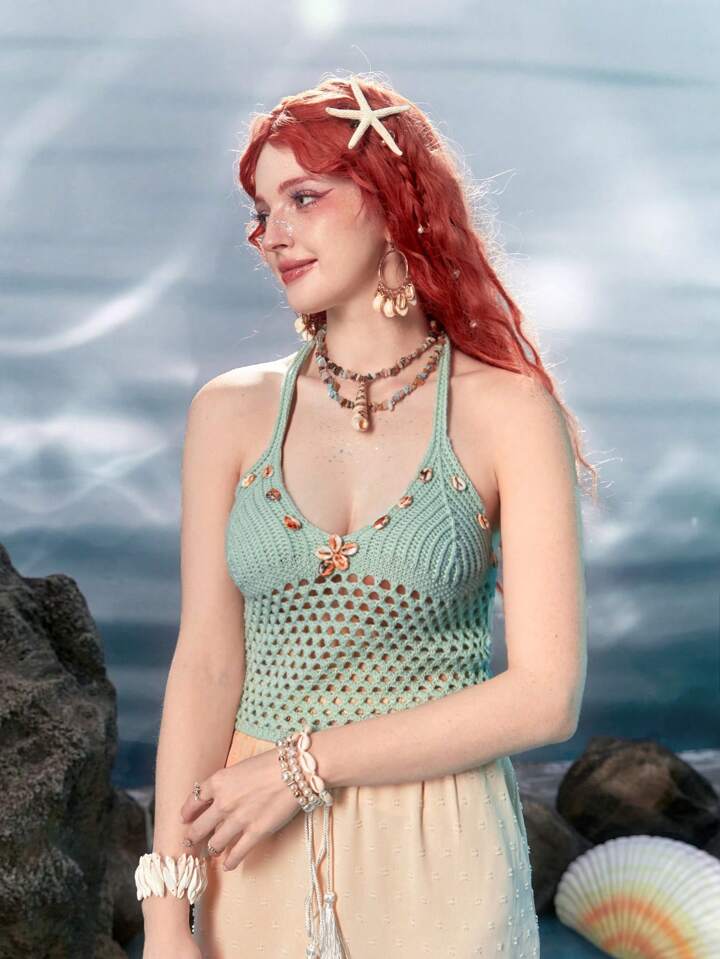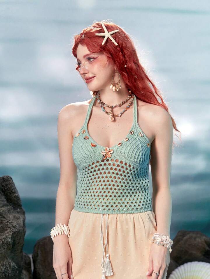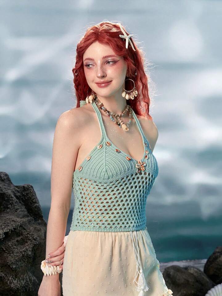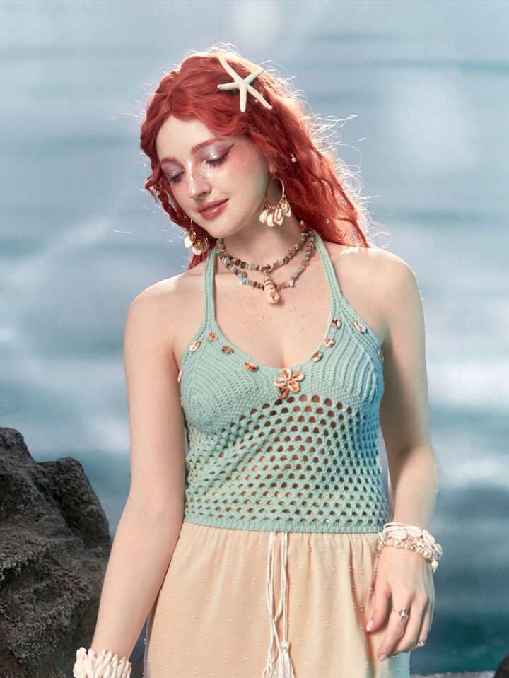 Fairycore Mermaid Hollow Out Halter Knit Top
