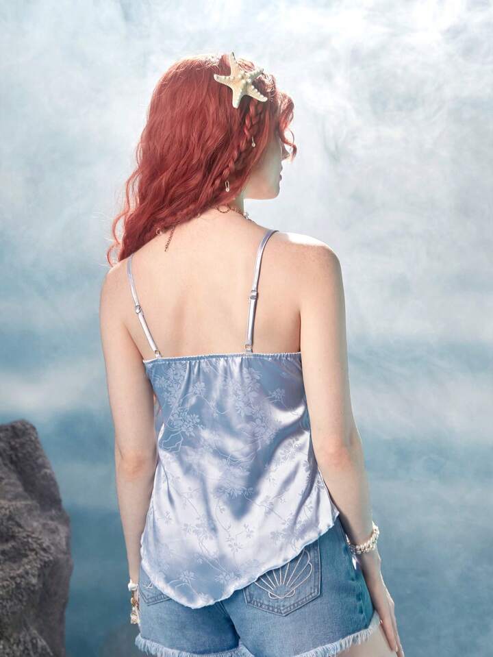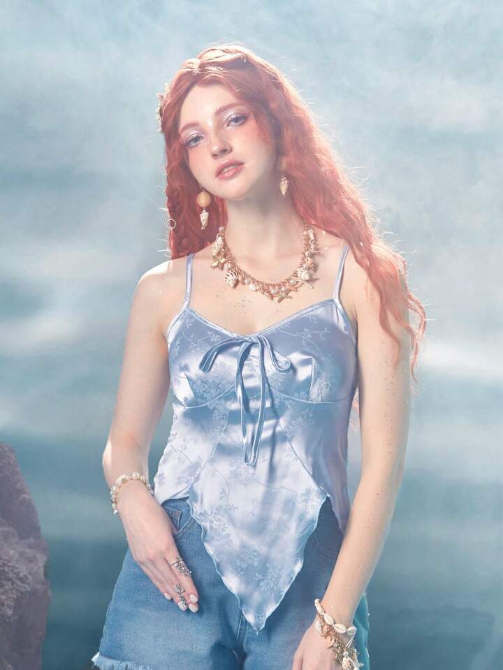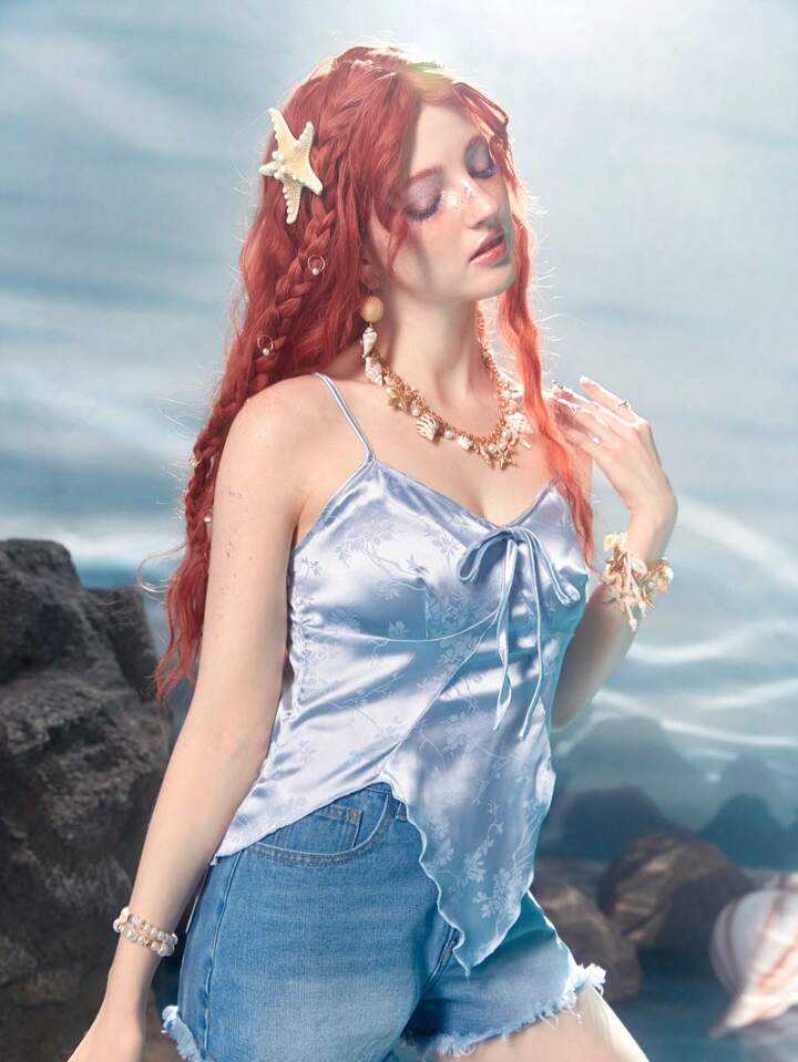 Fairycore Mermaid Satin Jacquard Knot Front Cami Top