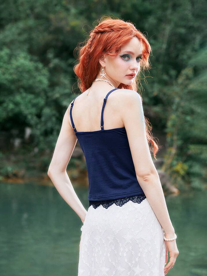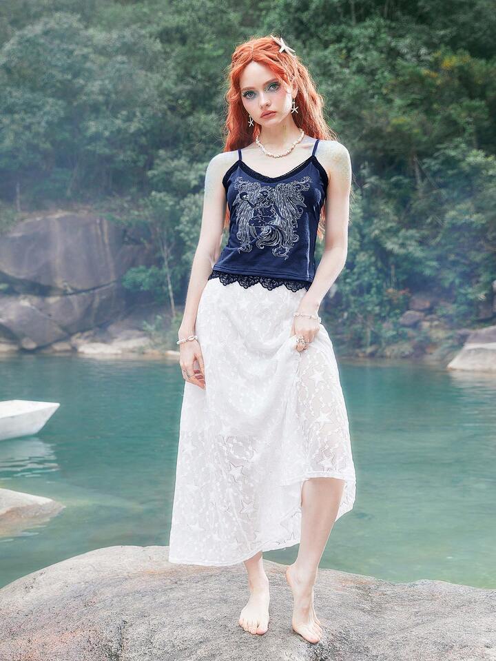 Fairycore Mermaid Wings & Figure Contrast Lace Cami Top