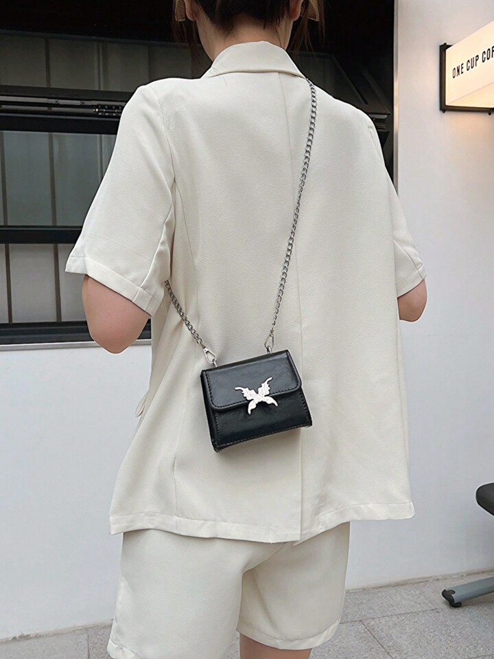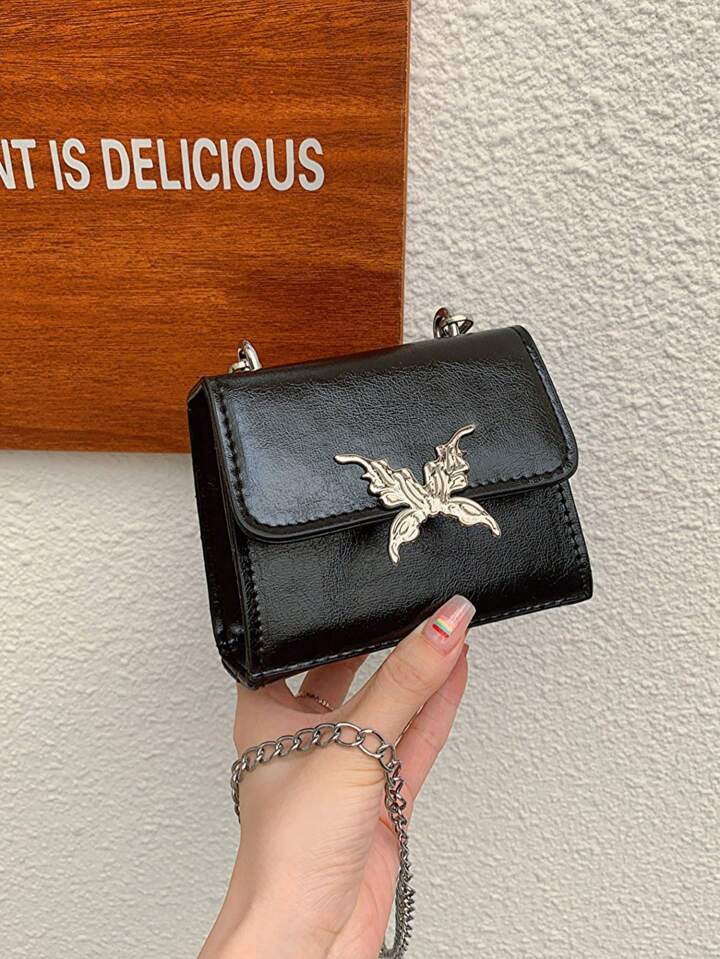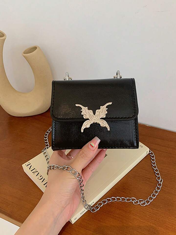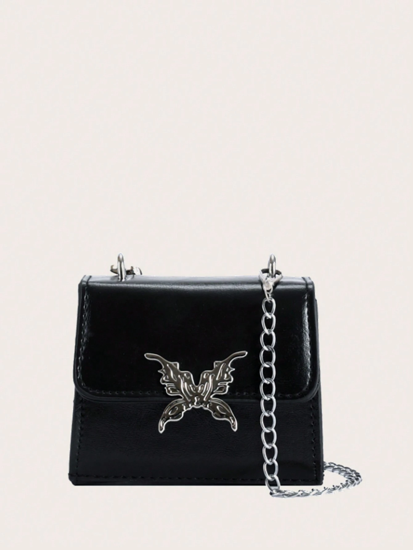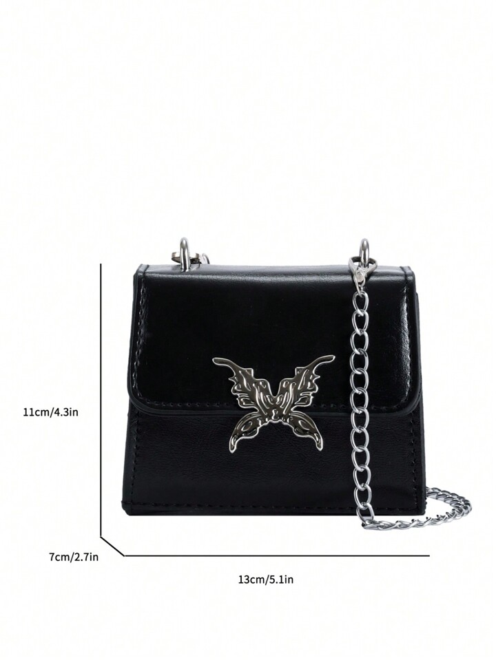 Fairycore Mini Square Bag Elegant Butterfly Decor Flap Chain For Working
