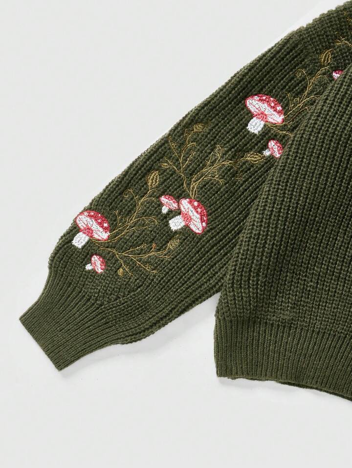 Fairycore Mushroom Embroidery Button Up Cardigan Sweater