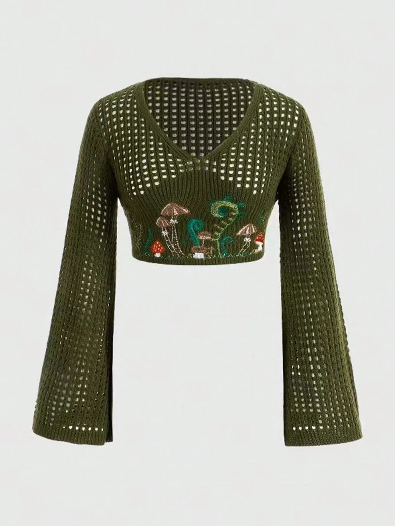 Fairycore Mushroom Pattern Hollow Out Sweater