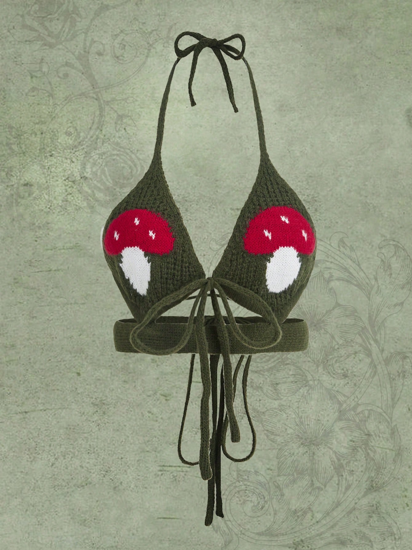 Fairycore Mushroom Pattern Tie Backless Halter Knit Top