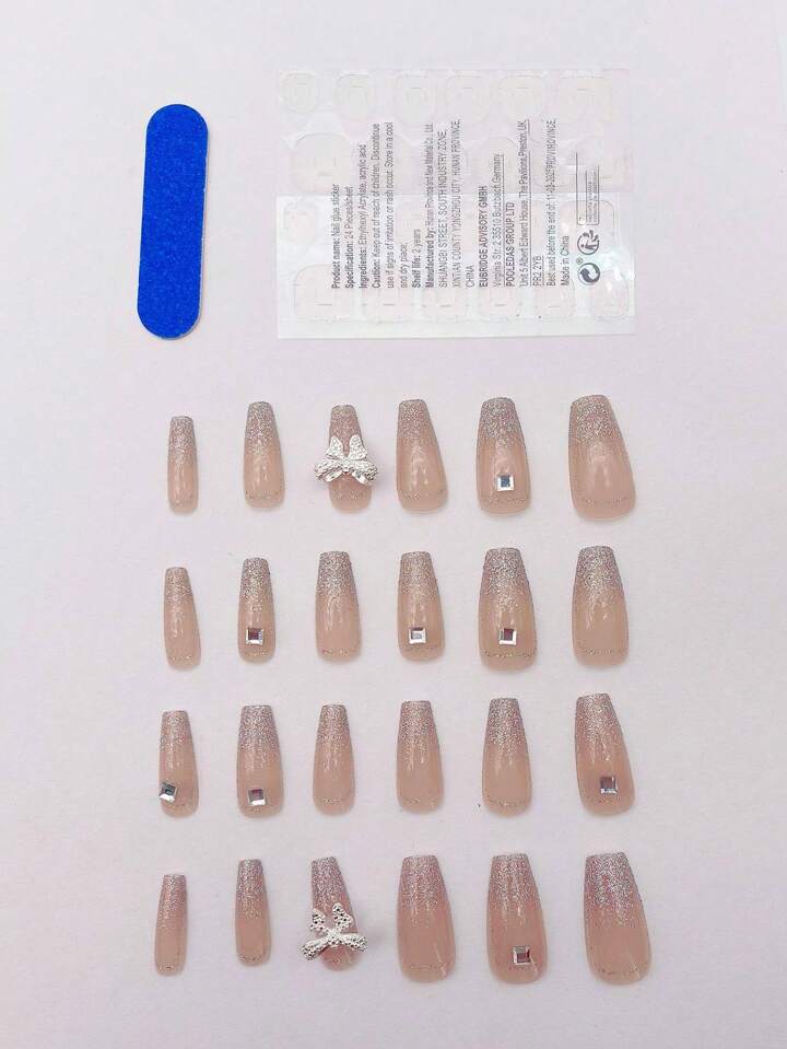 Fairycore Nail Art False Nails With Sparkly Bow Decor