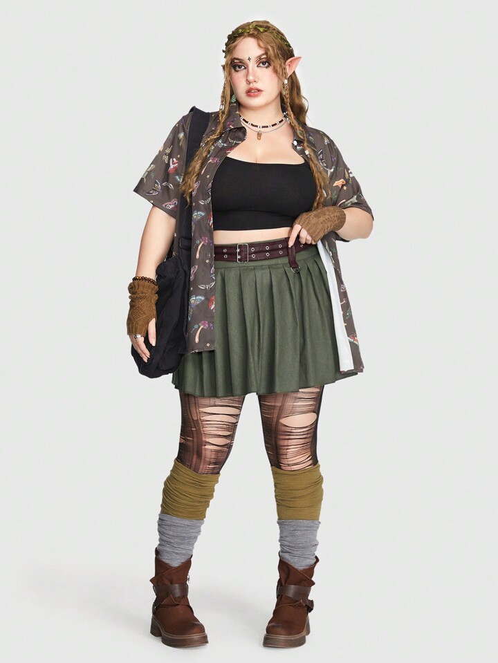 Fairycore Plus Belted Pleated Skirt