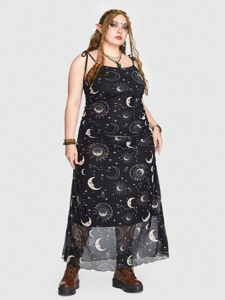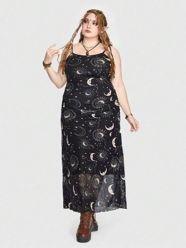 Fairycore Plus Galaxy Print Cami Dress