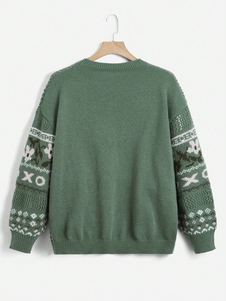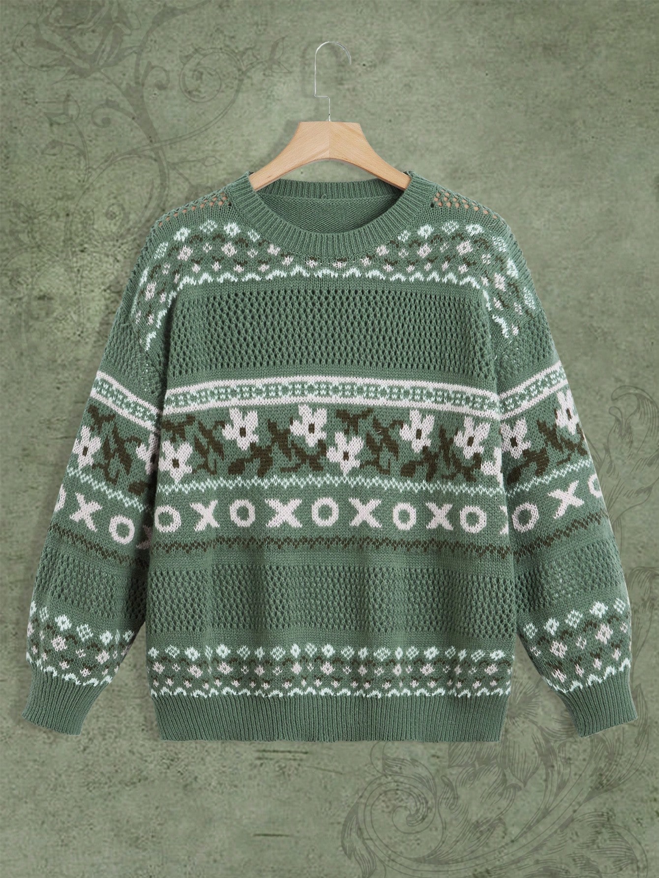 Fairycore Plus Geo Pattern Drop Shoulder Sweater