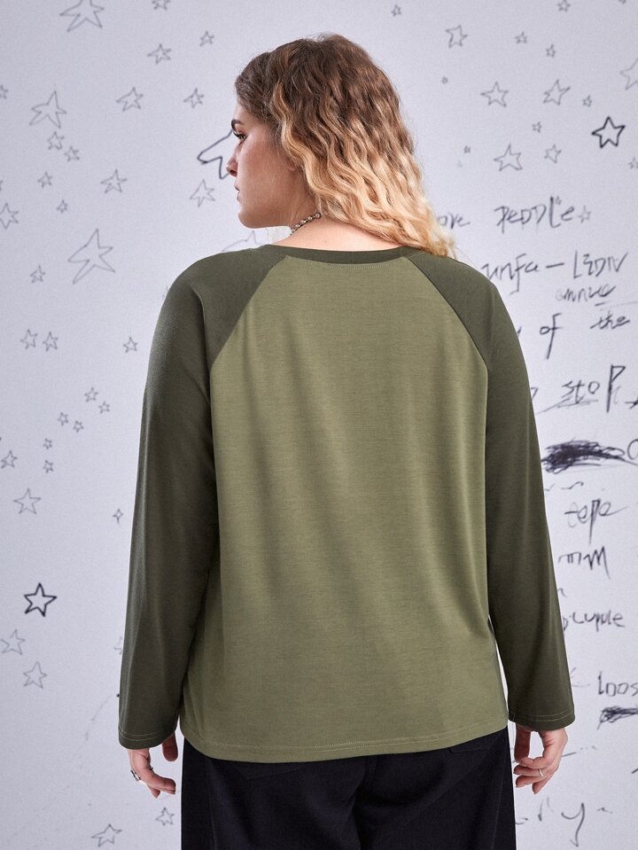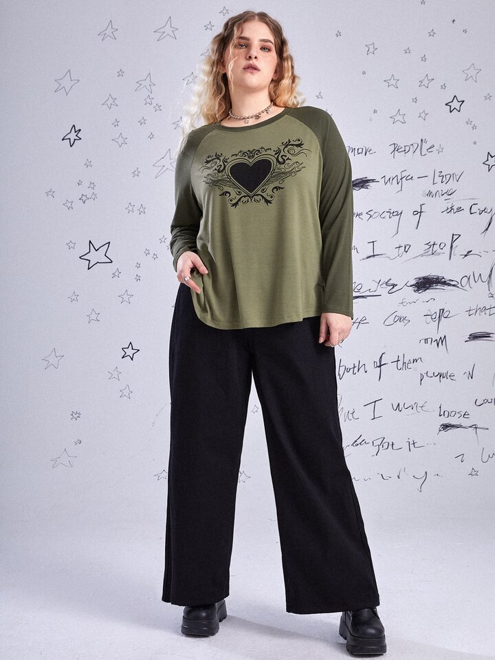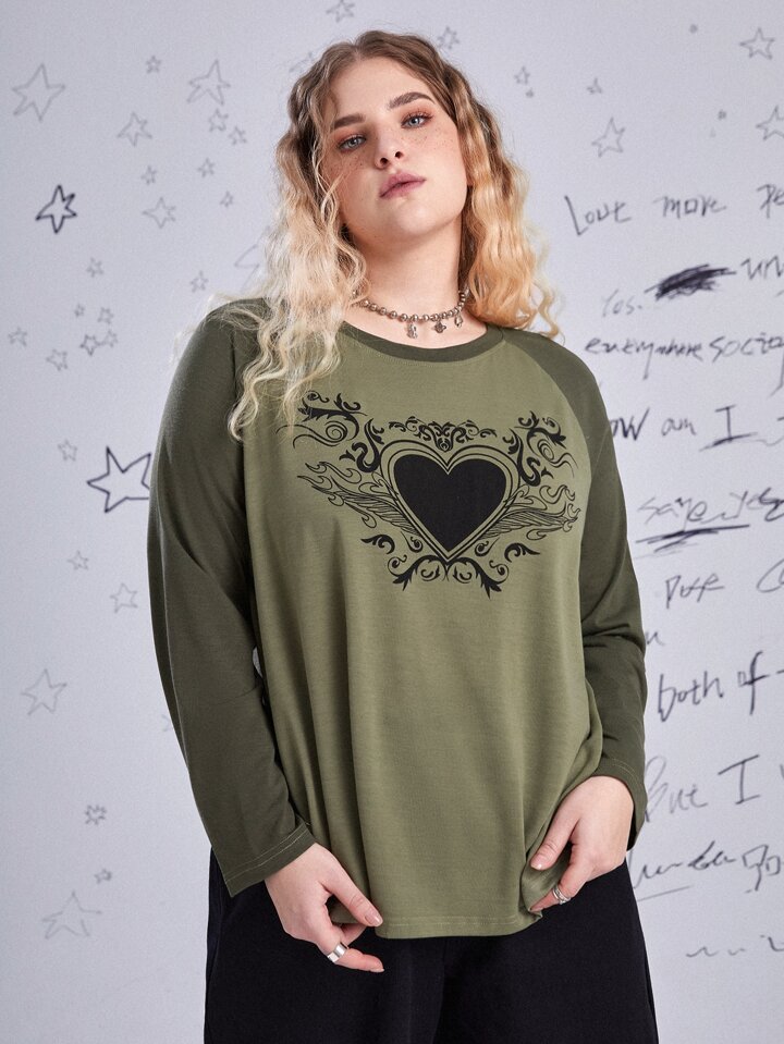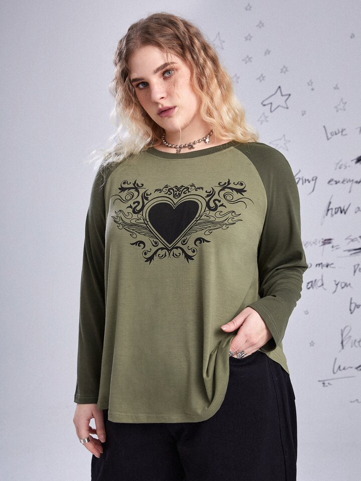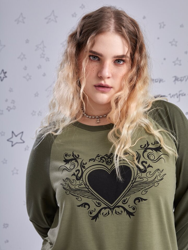 Fairycore Plus Heart Print Raglan Sleeve Tee