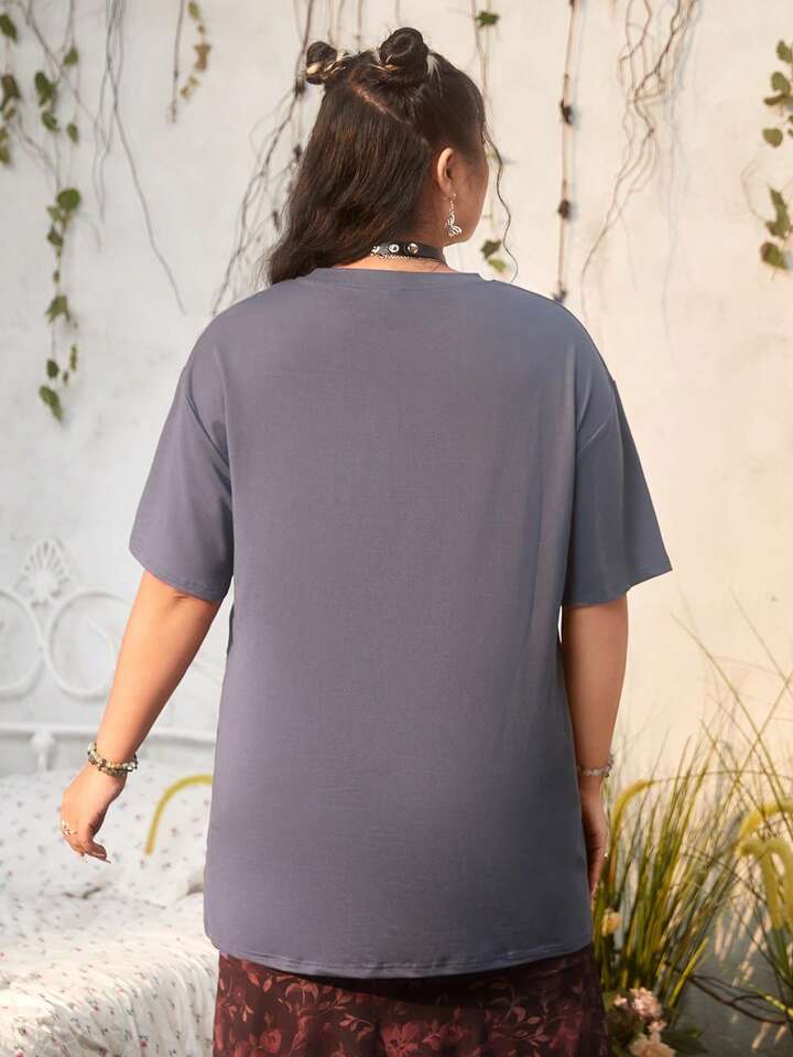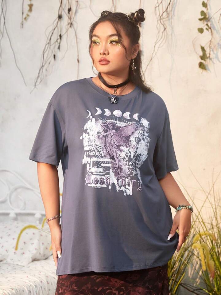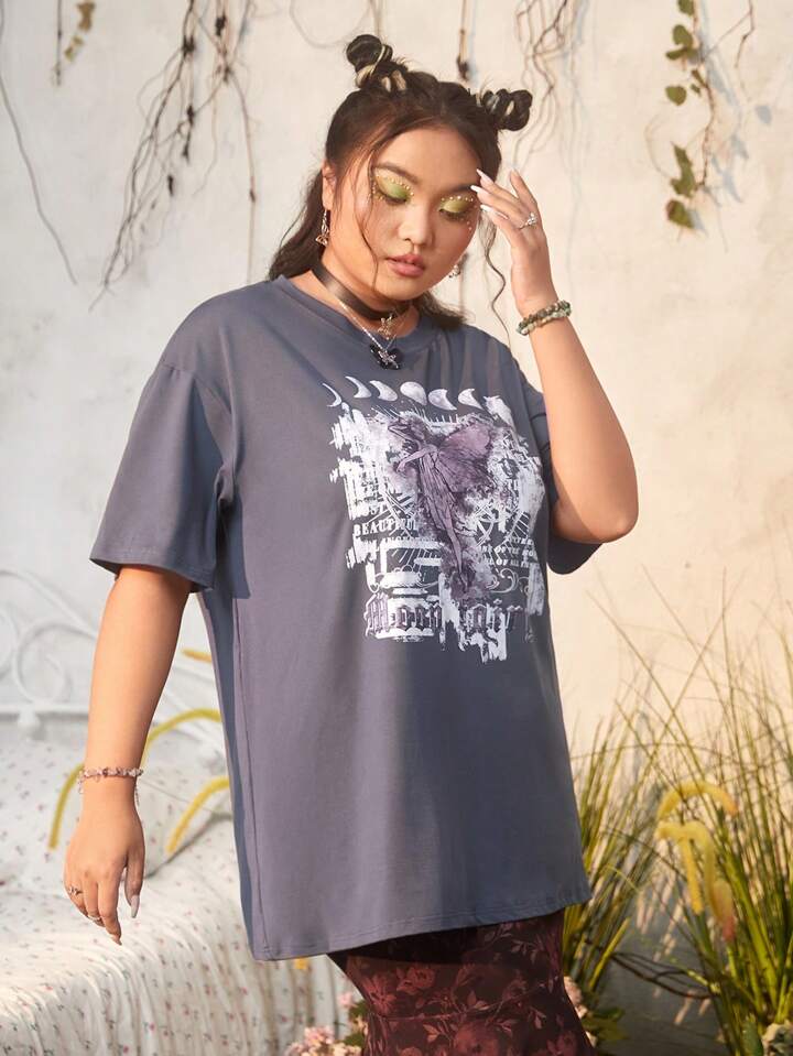 Fairycore Plus Letter & Figure Graphic Drop Shoulder Tee