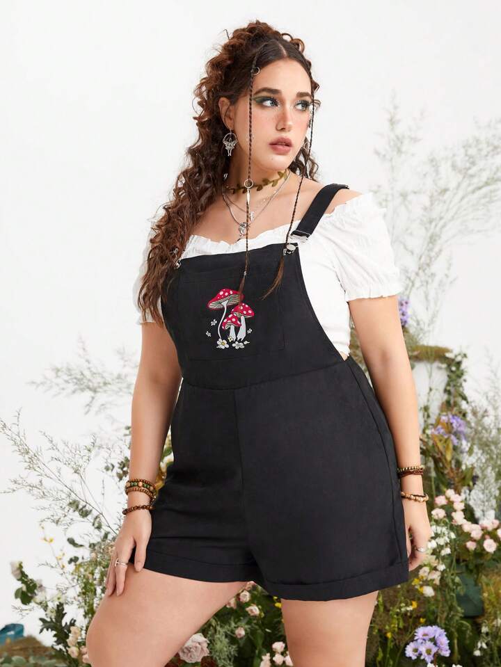 Fairycore Plus Mushroom Print Overall Romper Without Tee