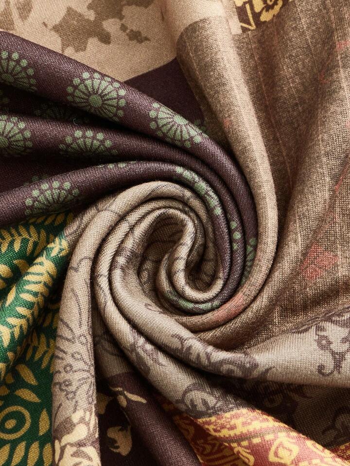 Fairycore Plus Patchwork Patchwork Print Drawstring Ruched Tie Back Skirt