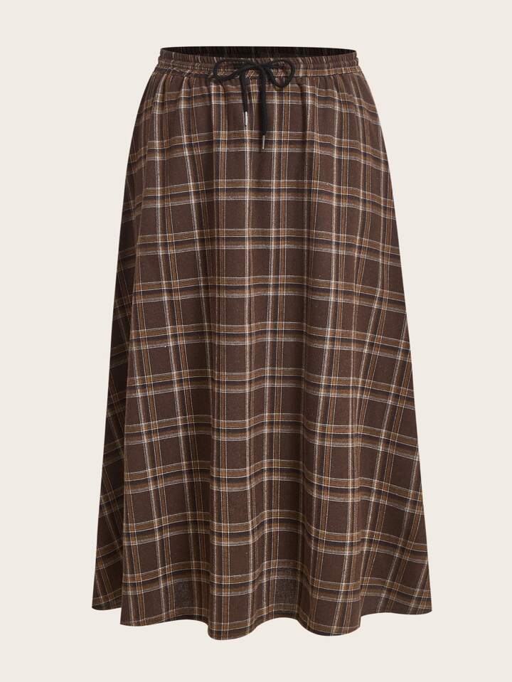 Fairycore Plus Plaid Print Drawstring Waist Skirt
