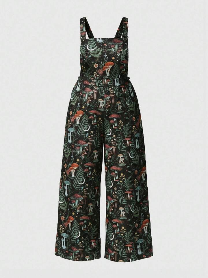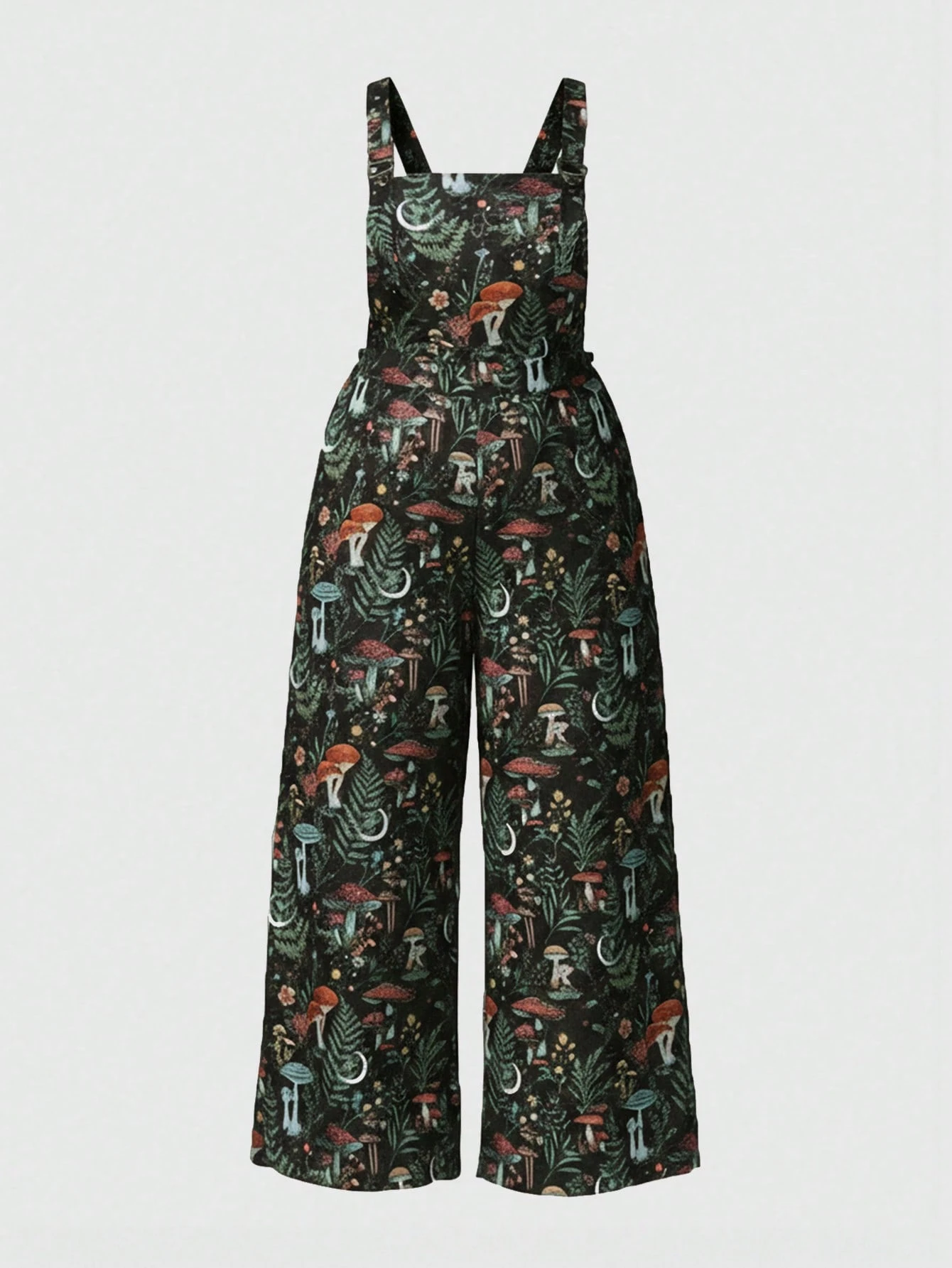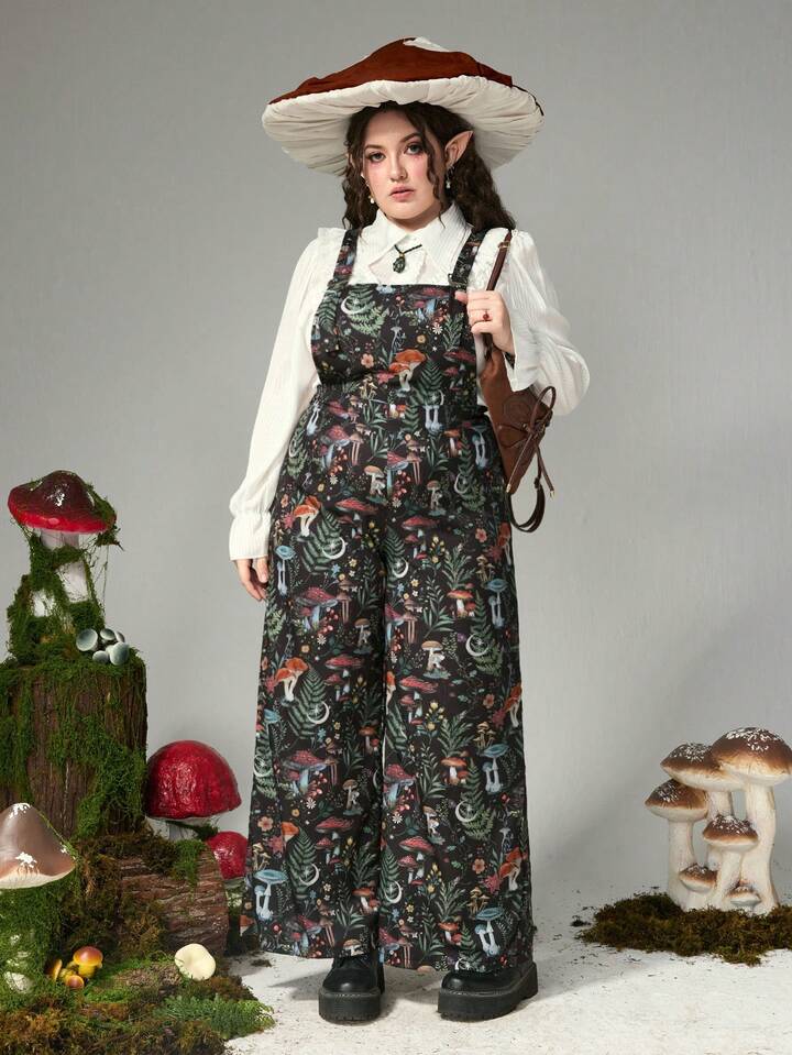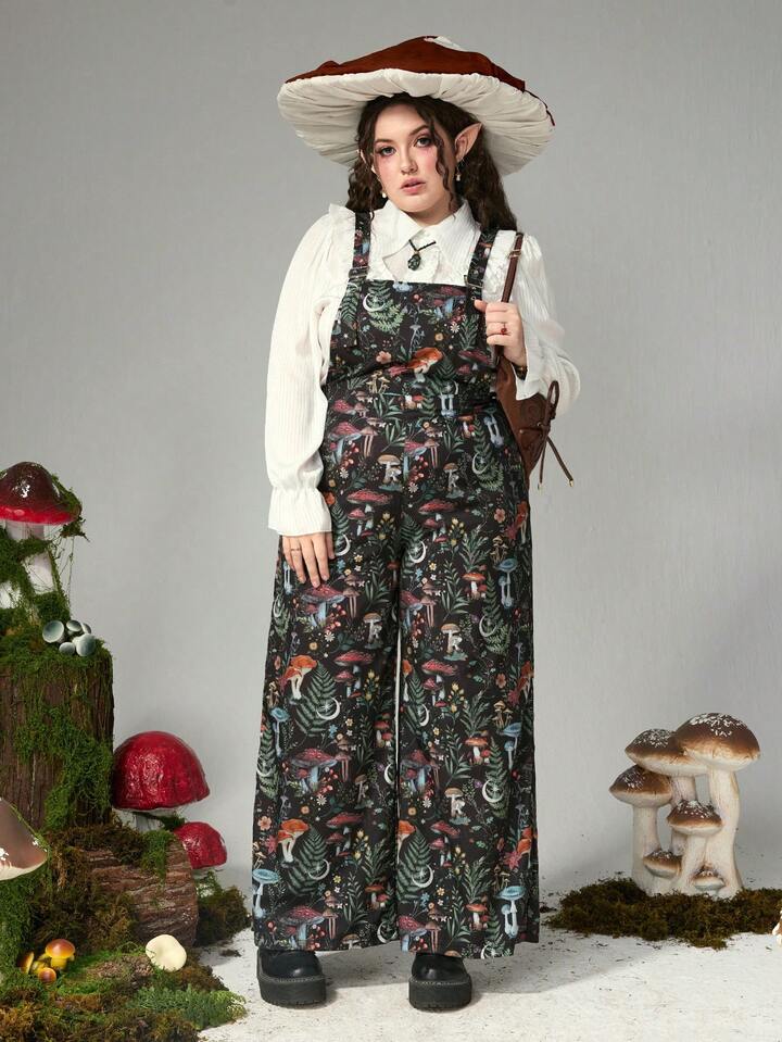 Fairycore Plus Size Casual Versatile Forest Mushroom Pattern Jumpsuit/Winter
