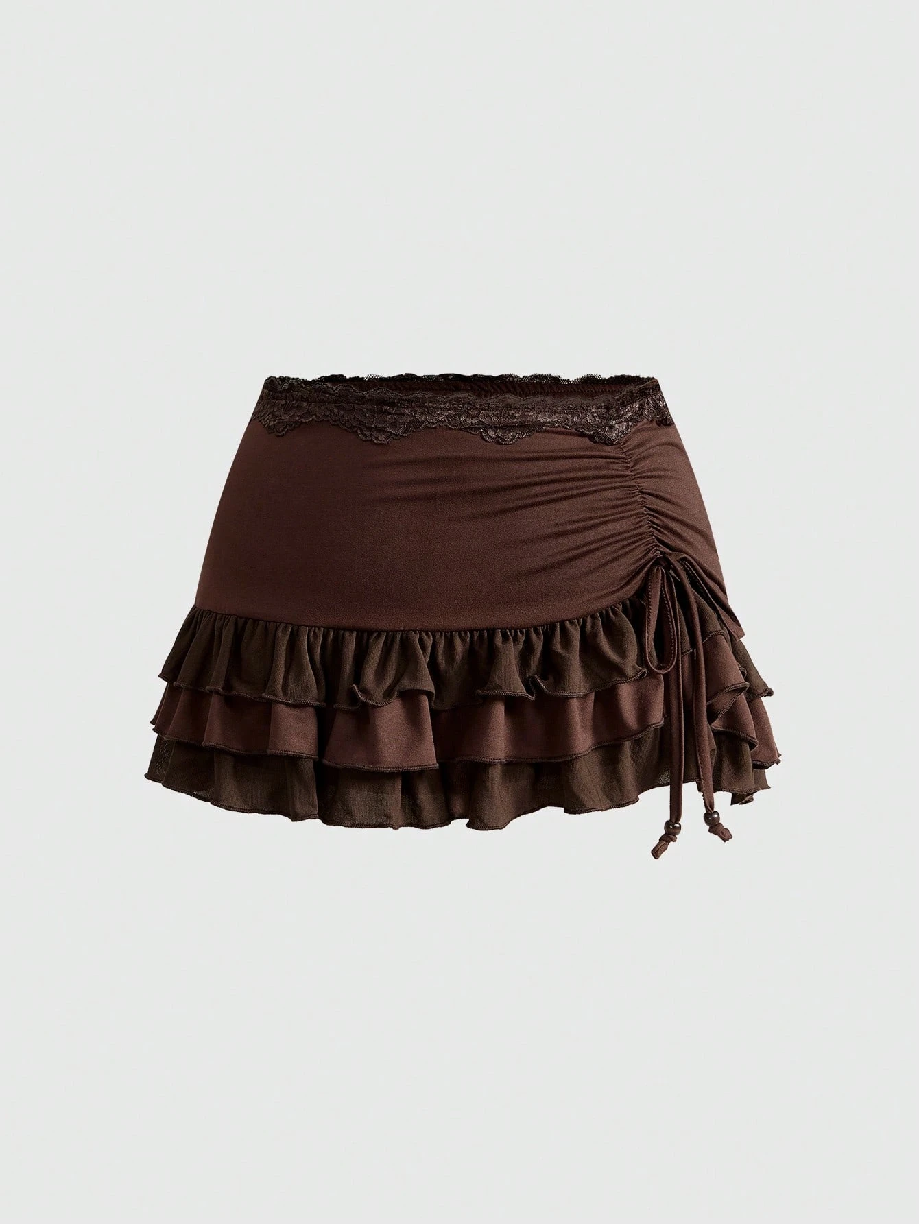 Fairycore Plus Size Women Casual Pleated Drawstring Ruffle Hem Skirt