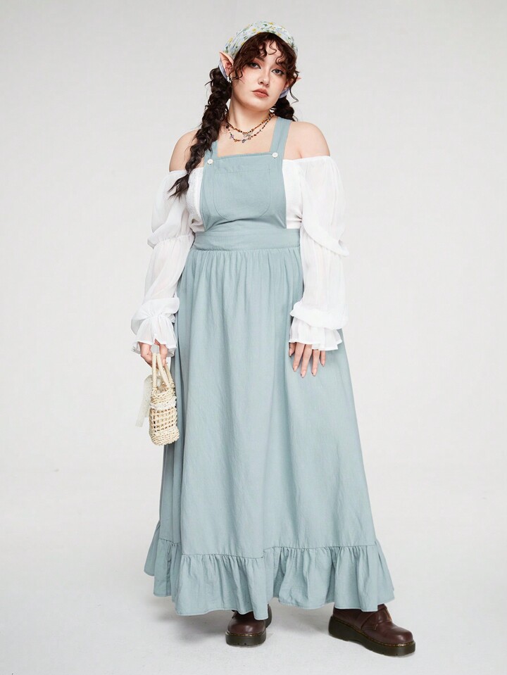 Fairycore Plus Size Women's Solid Color Suspender Dress