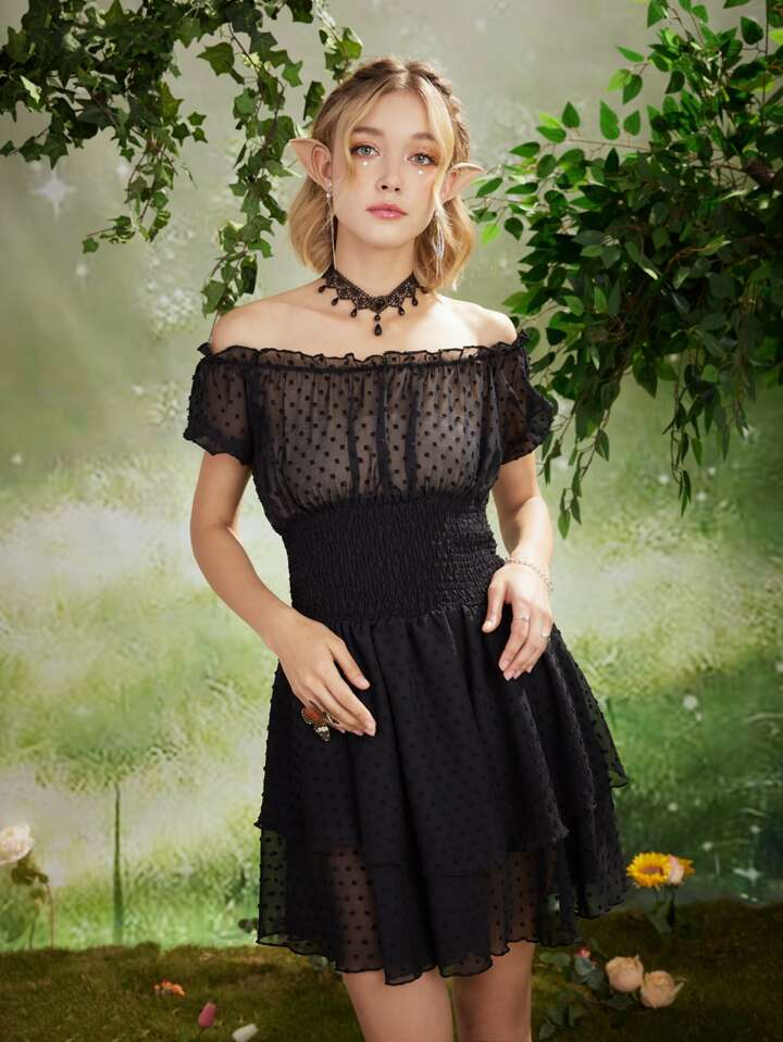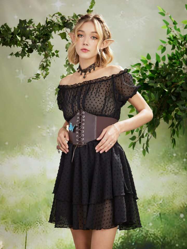 Fairycore Polka Dot Sheer Off Shoulder Dress Without Corset