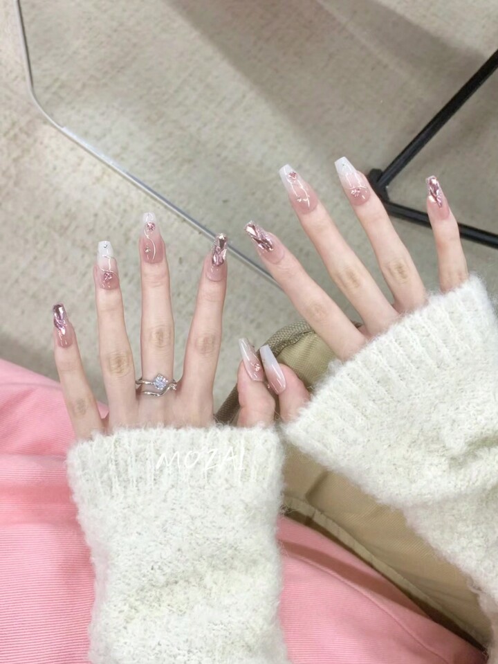 Fairycore Reusable Press-On Nails 24 Nails, Fashionable Nail Art For Women 12 Inclusive Sizes