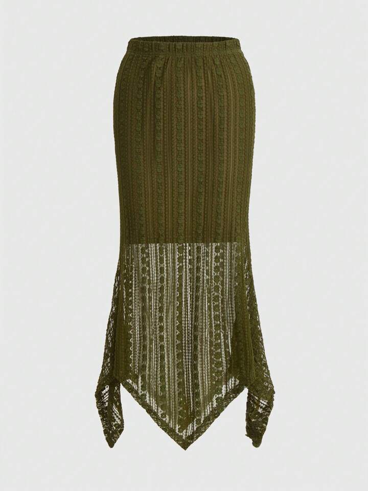 Fairycore Solid Asymmetrical Hem Lace Skirt