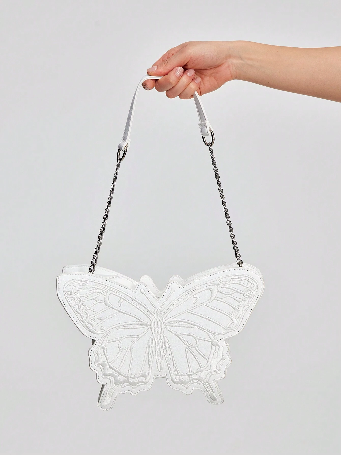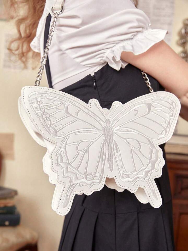 Fairycore Solid Color Asymmetric Thread Embroidery Butterfly Shape Chain Shoulder Bag Valentines