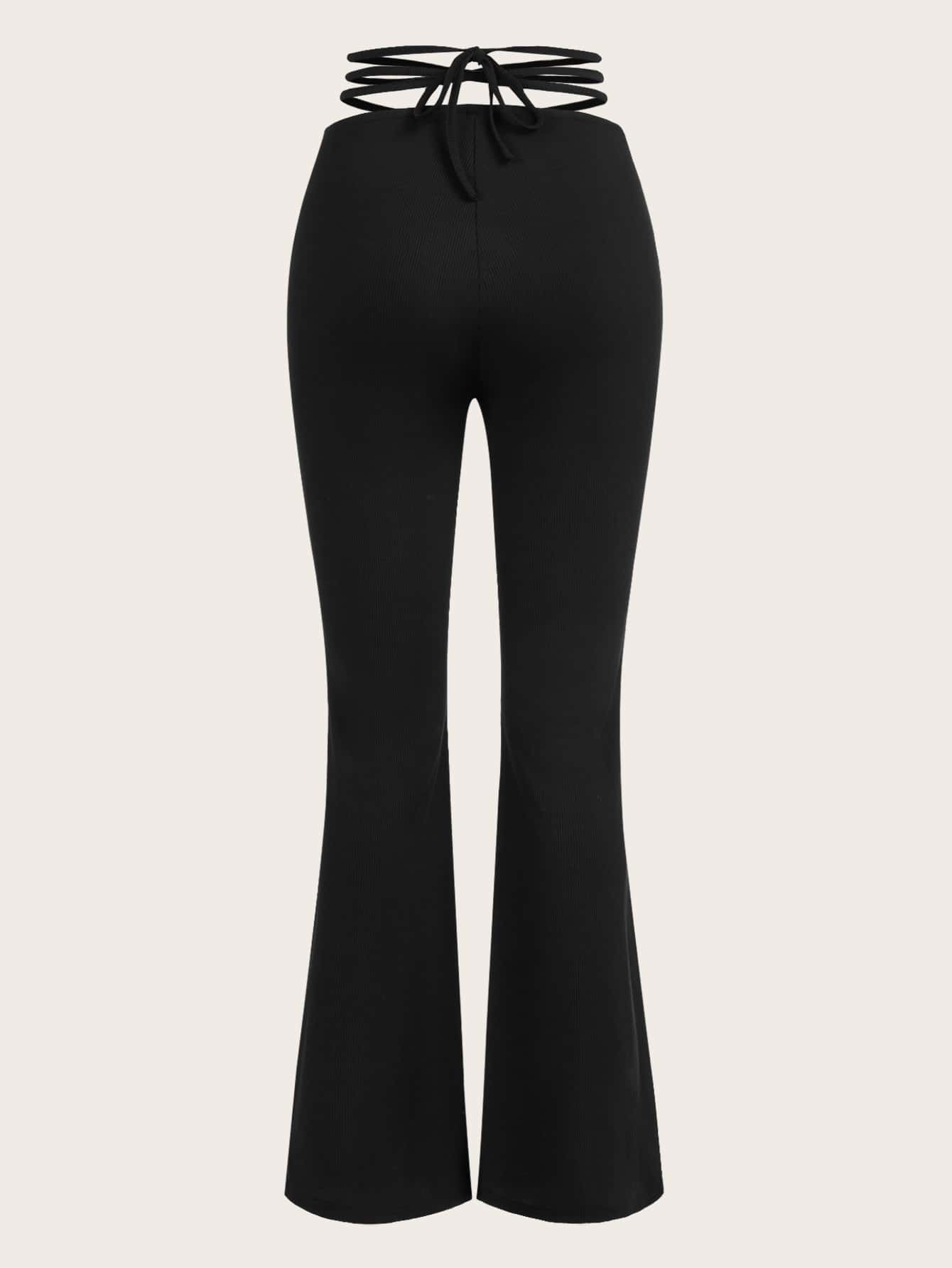 Fairycore Solid Drawstring Criss Cross Flare Leg Pants