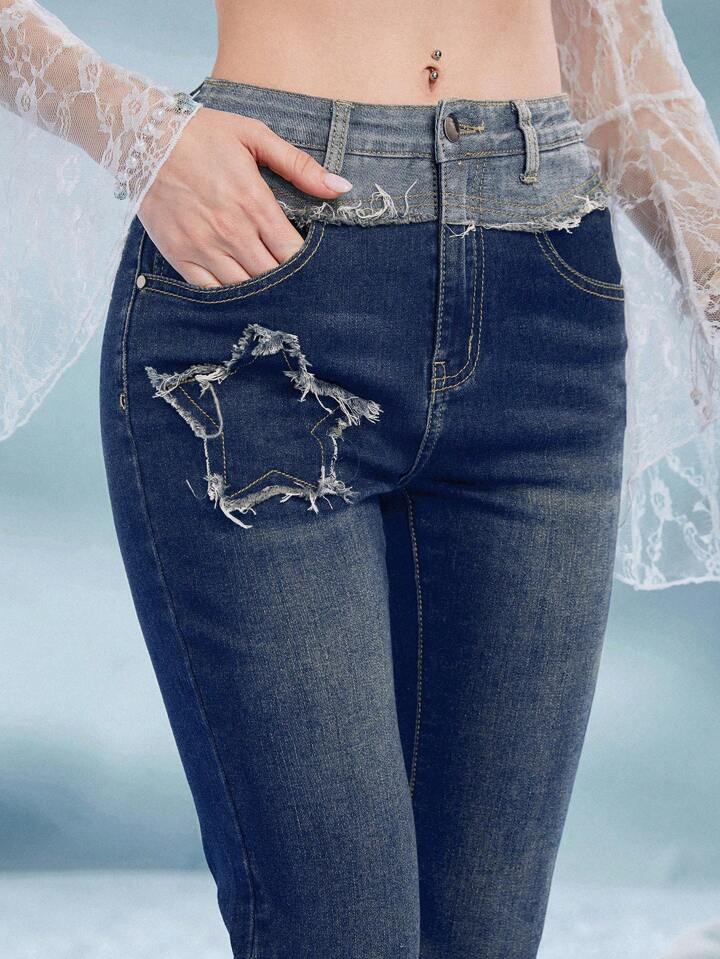 Fairycore Star Pattern Flare Leg Jeans
