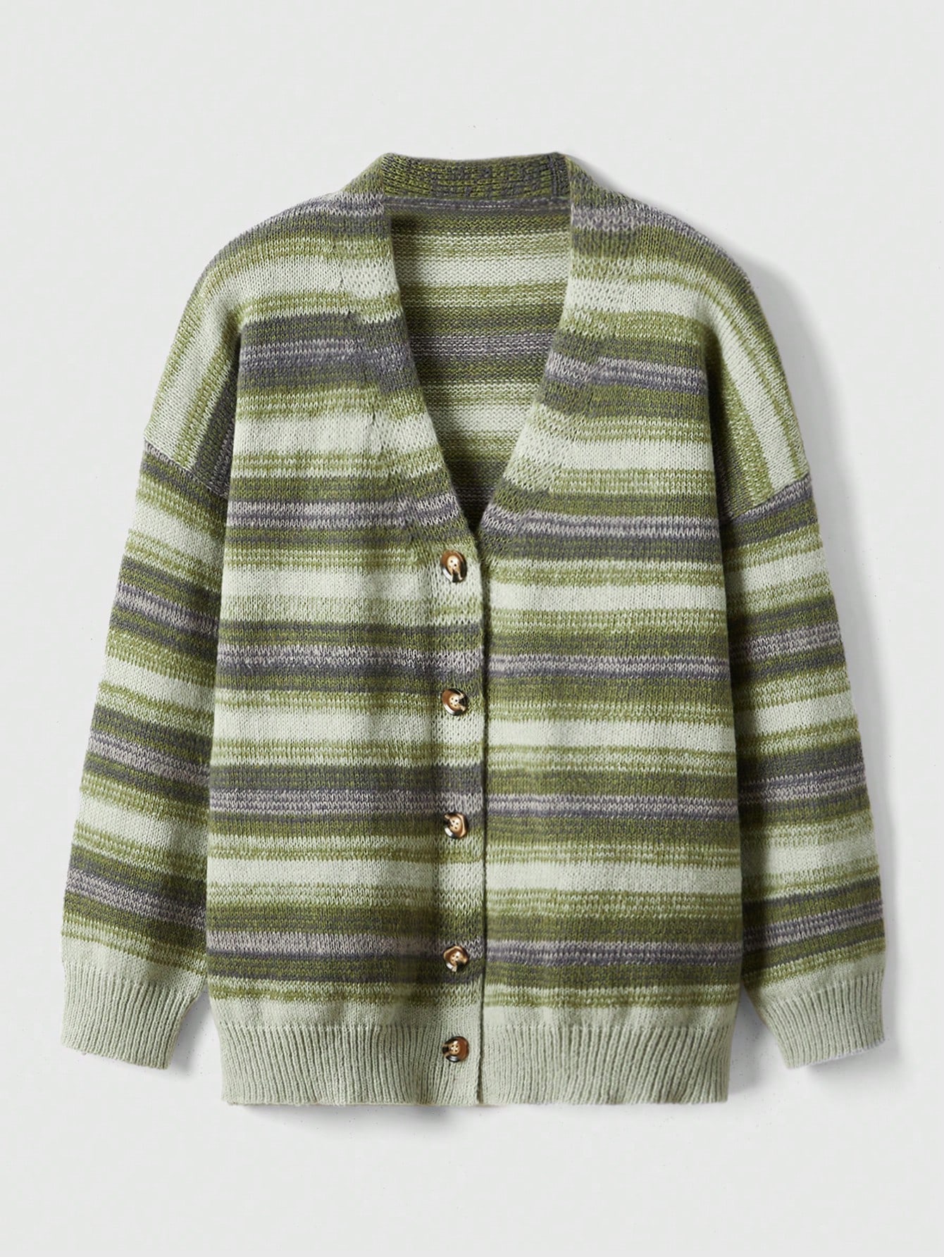 Fairycore Striped Pattern Drop Shoulder Cardigan
