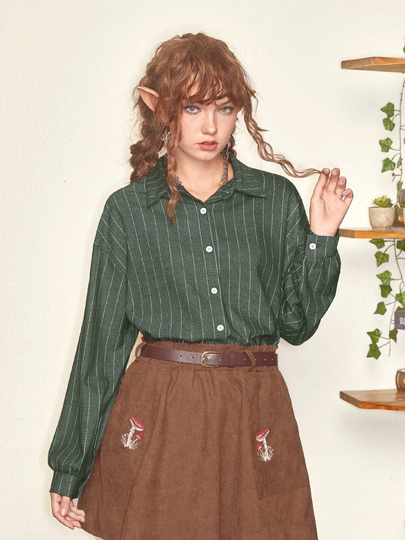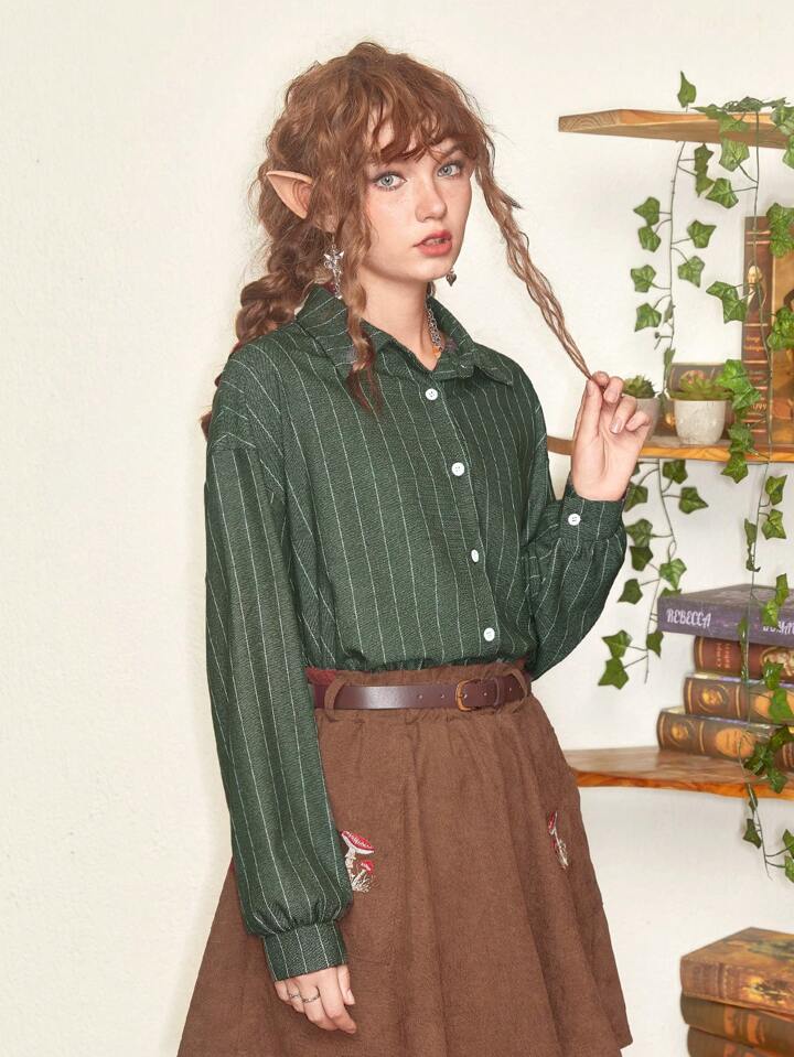 Fairycore Striped Print Drop Shoulder Button Front Shacket