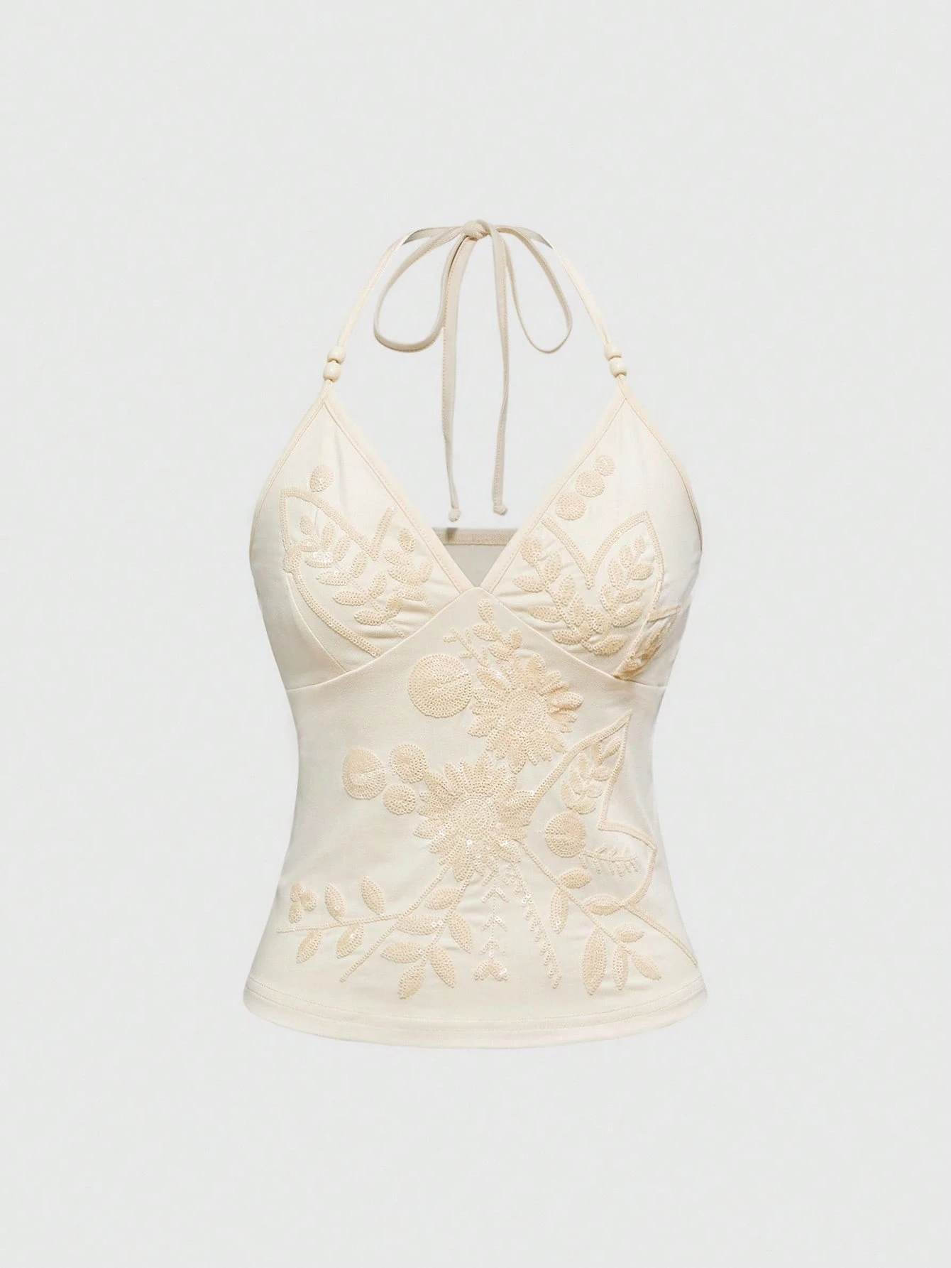 Fairycore Summer Fashion Beaded Embroidery Halter Crop Top