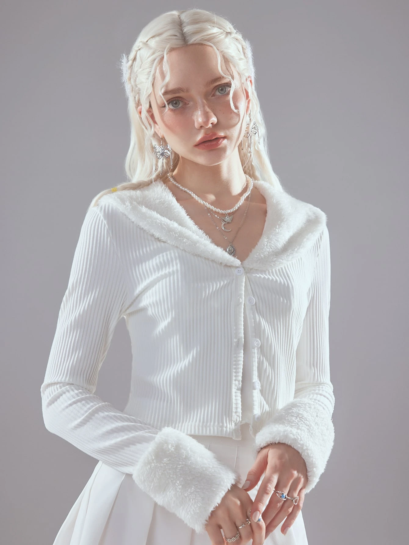 Fairycore Teddy Collar Button Front Jacket