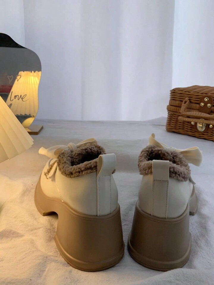 Fairycore Women Fluffy Trim Bowknot Decor Chunky Shoes