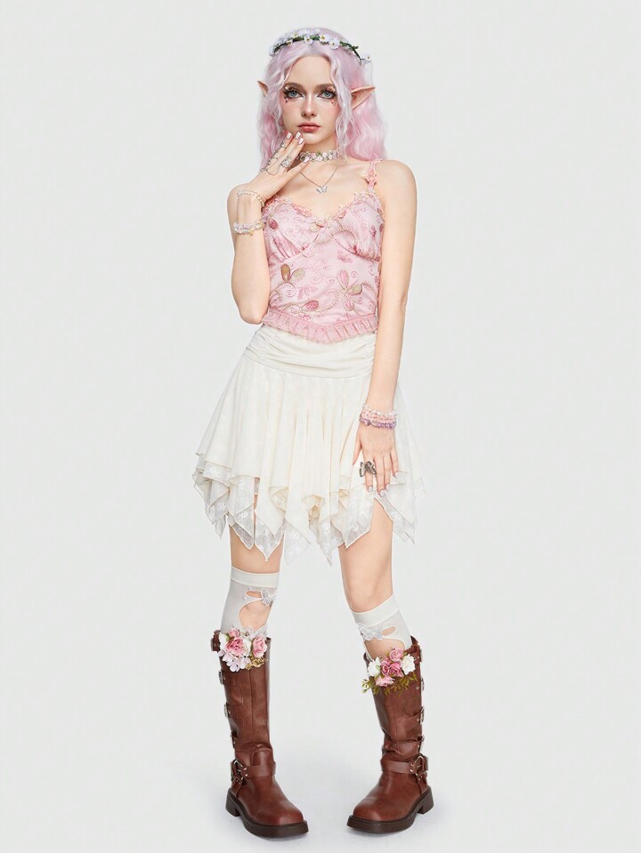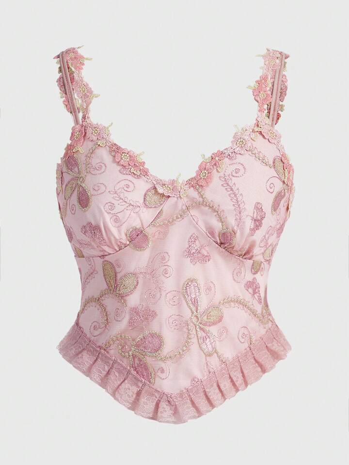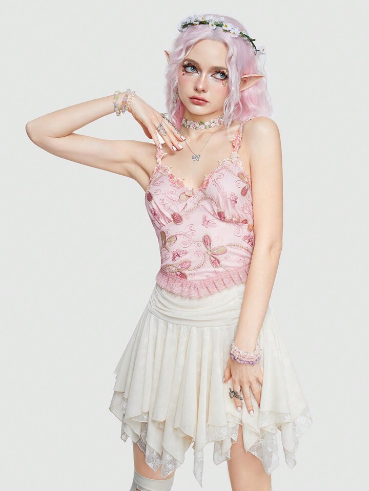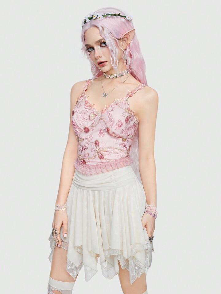 Fairycore Women'S Floral Embroidered Camisole Top