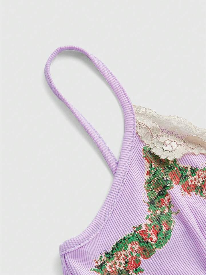 Fairycore Women'S Floral Printed Patchwork Lace Camisole