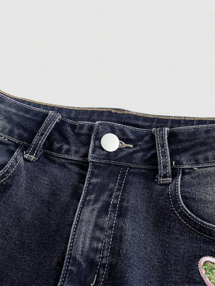 Fairycore Women Y2k Summer Retro Dragonfly Embroidery Capri Super Low Waist Jeans