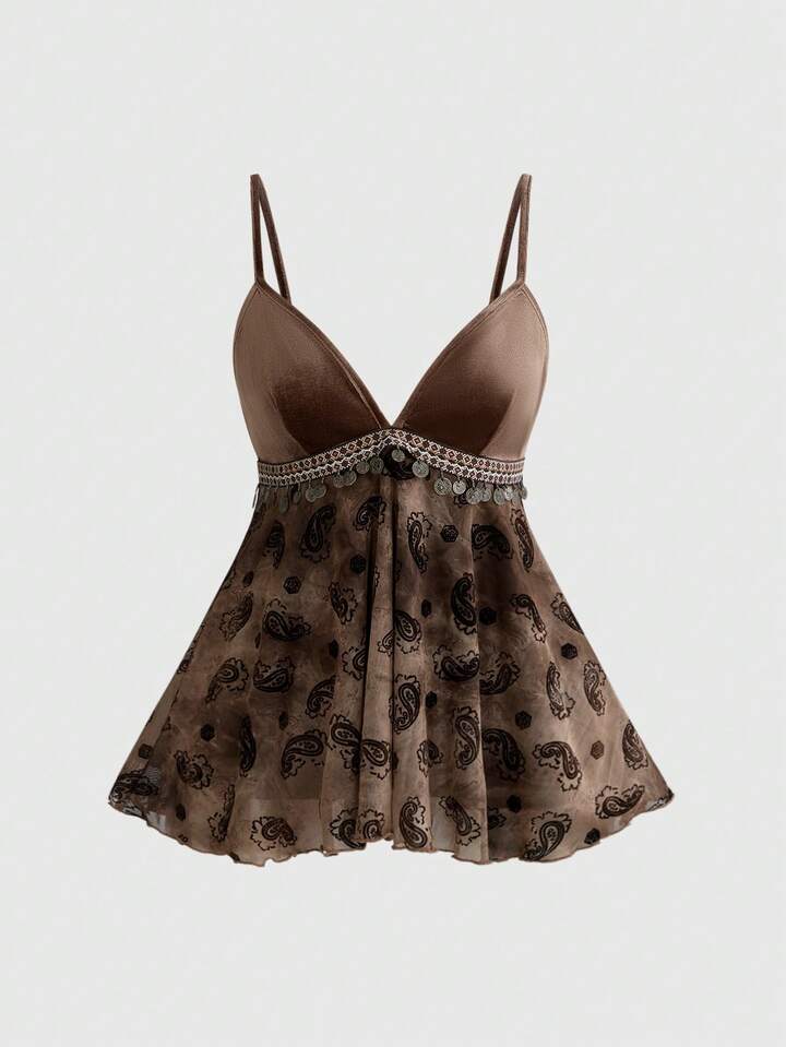 Fairycore Women's Casual Cashew Print Camisole Top, Versatile For Dating And Outings