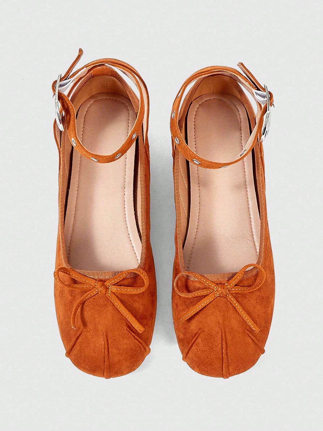 Fairycore Women's Cute Bow Mary Jane Flat Shoes, Comfortable Fashion Round Five-Star Criss-Cross Strap Casual Soft Bottom Increased Height Ballet Flats