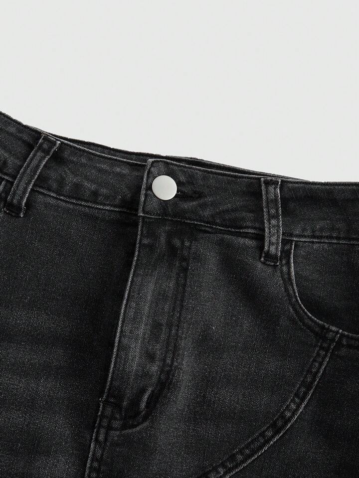 Fairycore Women's Denim Mini Skirt With Ruffle Hem & Side Slit, Sexy Style