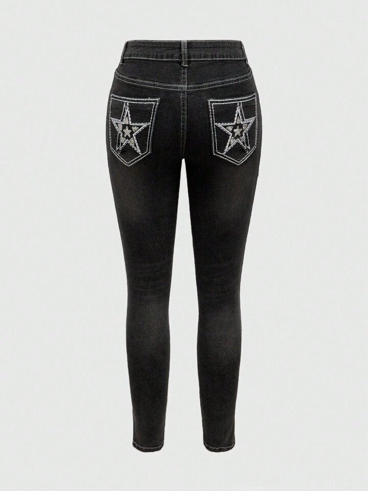 Fairycore Women's Pentagram Pattern Skinny Casual Versatile Jeans