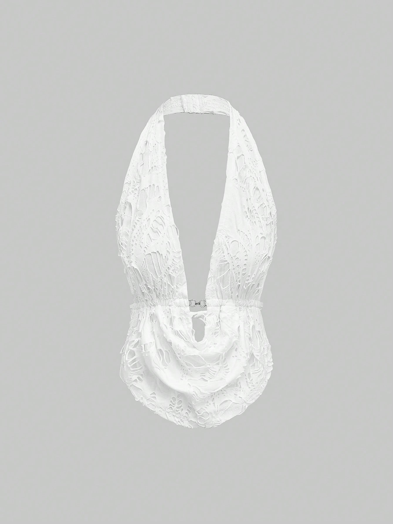 Fairycore Women's Retro Y2K Subculture Sexy Draped Neck Textured Fabric Backless Camisole