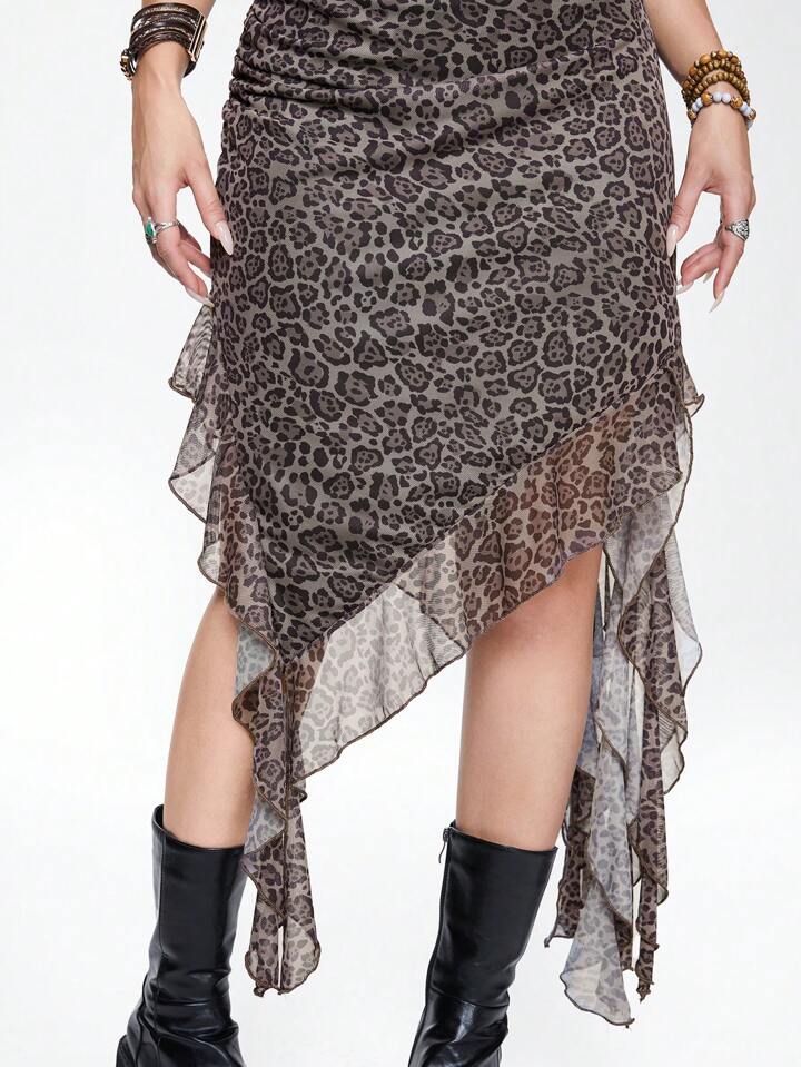 Fairycore Women's Spaghetti Strap Leopard Print Dress With Flowy Hem