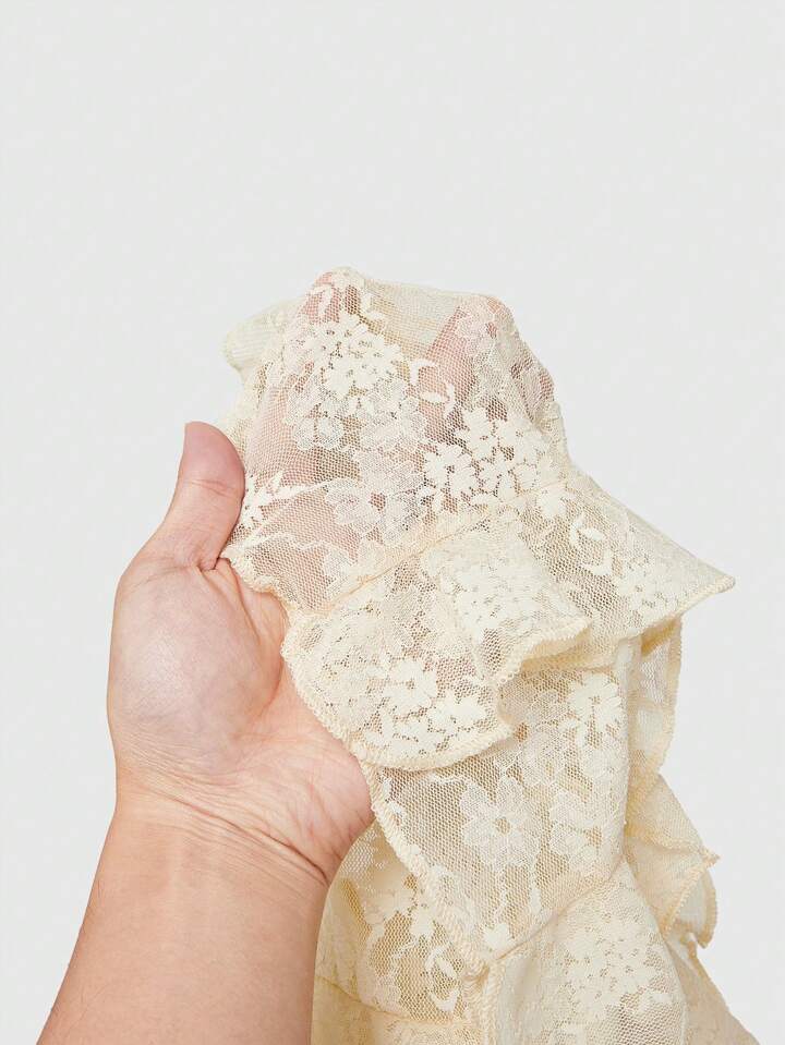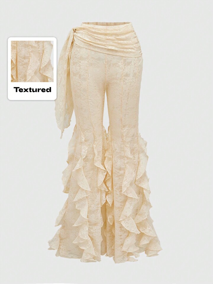 Fairycore Women's Vintage Lace See-Through Flared Pants With Ruffle Hem, Sexy