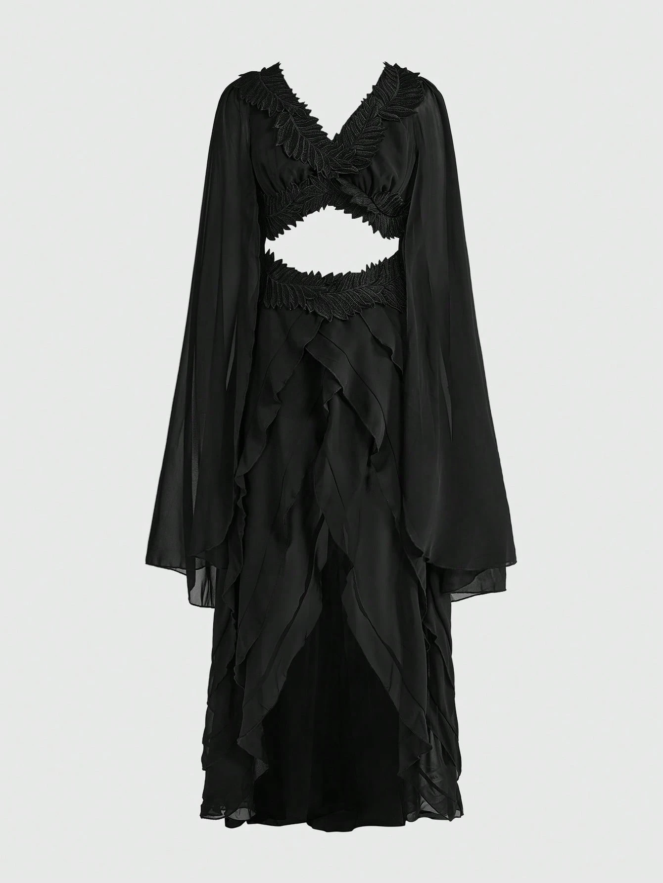 Fairycore Women's Vintage Music Festival Fairy Elf Style Embroidered Hooded Dress