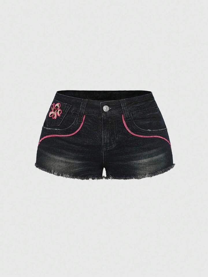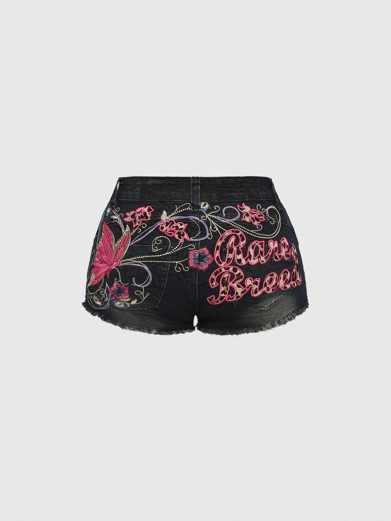 Fairycore Y2K Baddie Tight Butterfly Embroidery Distressed Washed Plus Size Denim Shorts