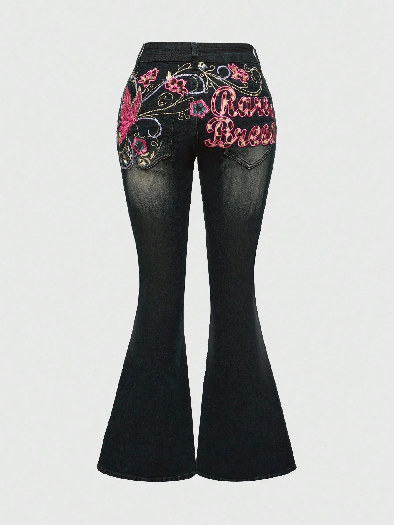 Fairycore Y2K Butterfly Embroidery Distressed Super Low Waist Skinny Jeans For Women