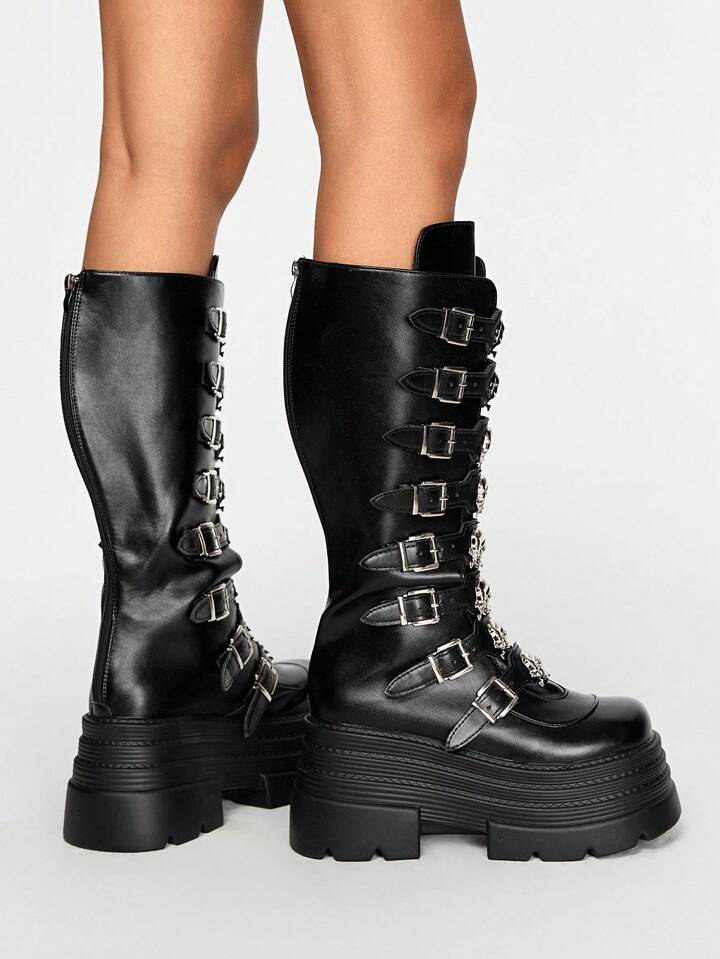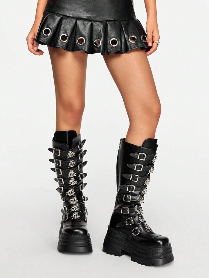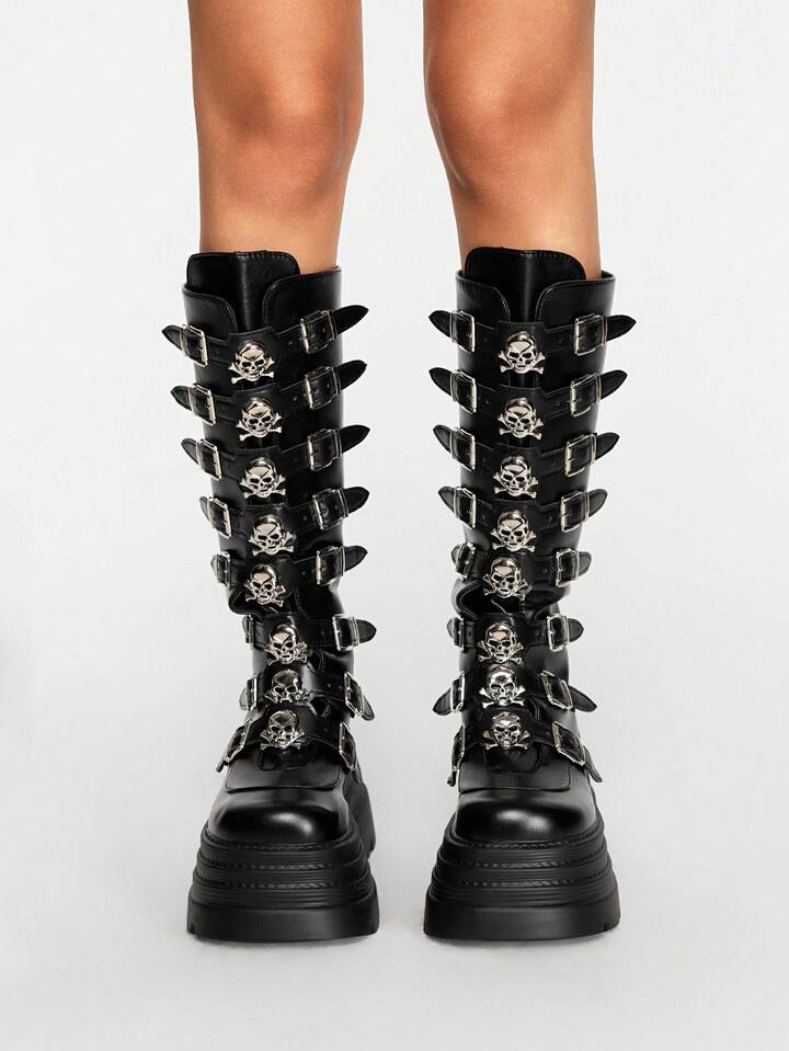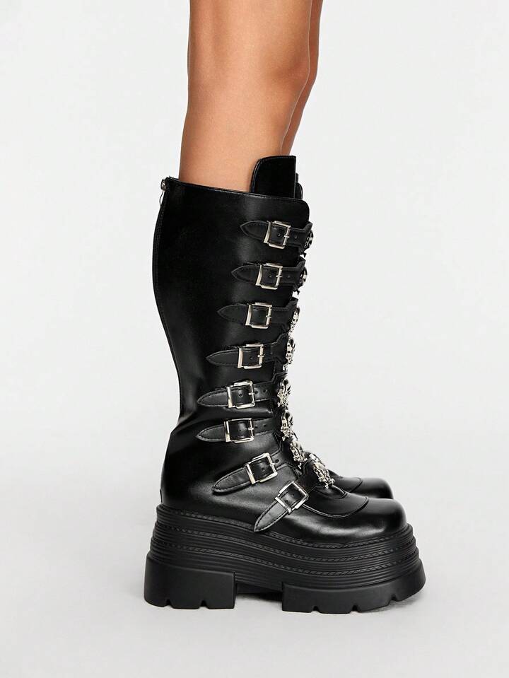 Fashionable Dark Goth Rock Punk Platform Over-The-Knee Boots