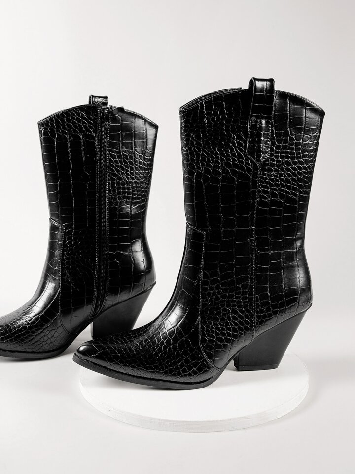 Faux Crocodile Leather Zip-Up Cowboy Boots