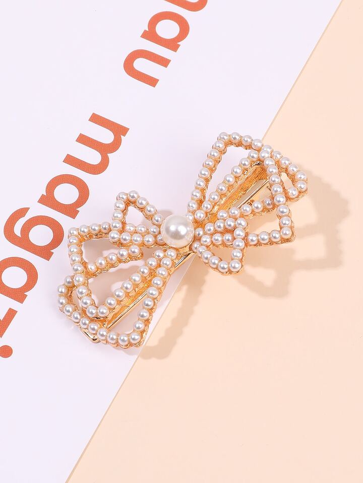 Faux Pearl Bow Hair Clip