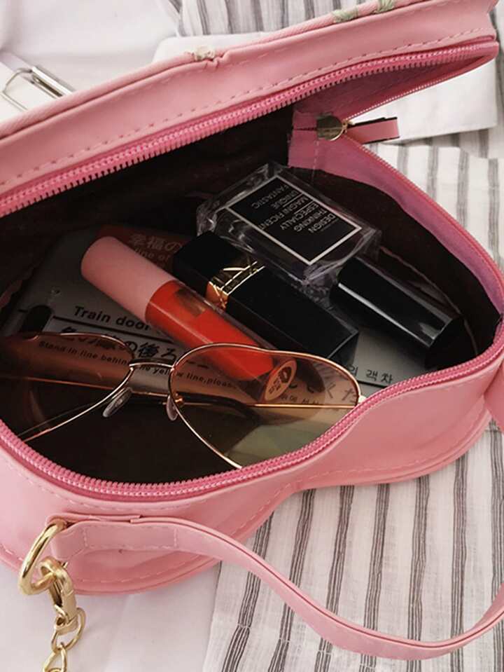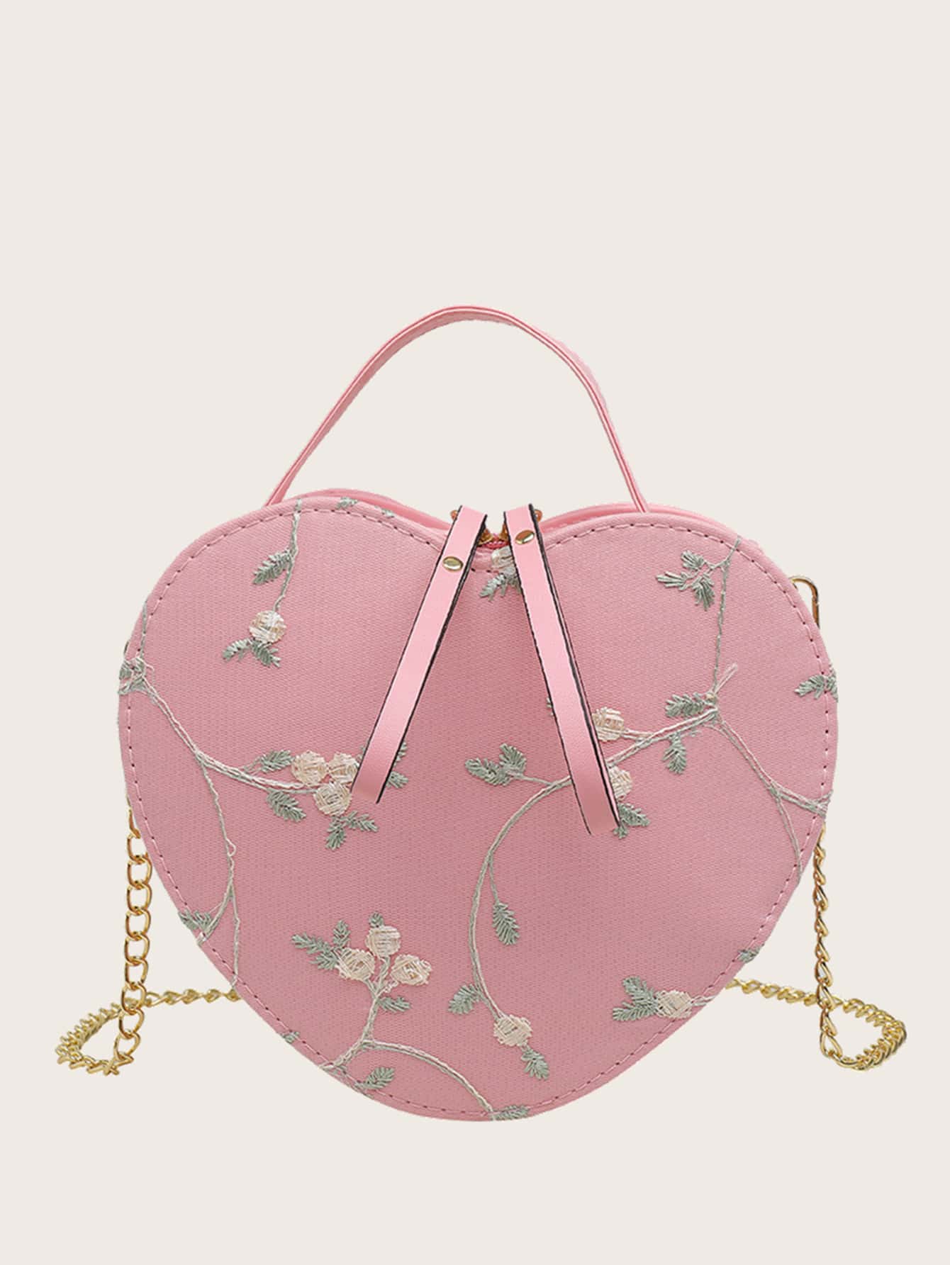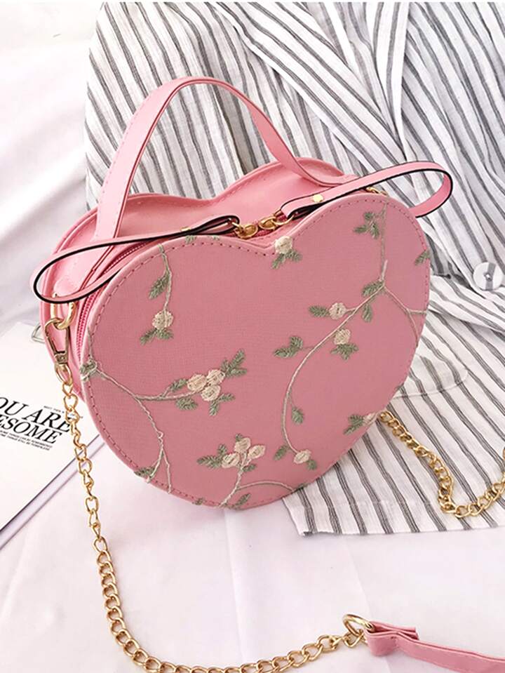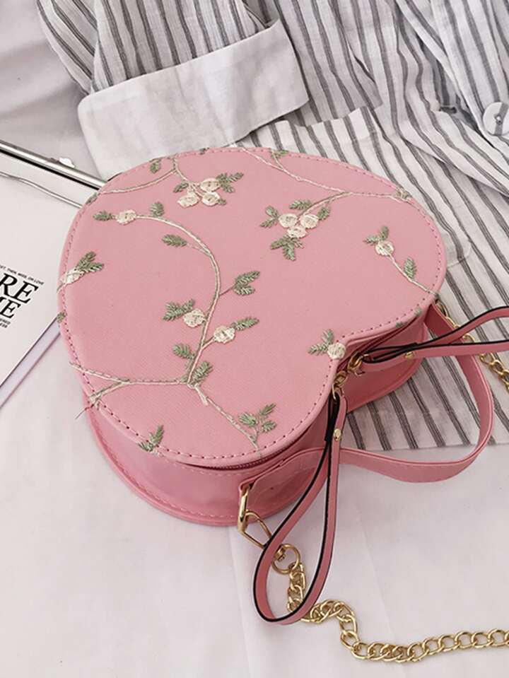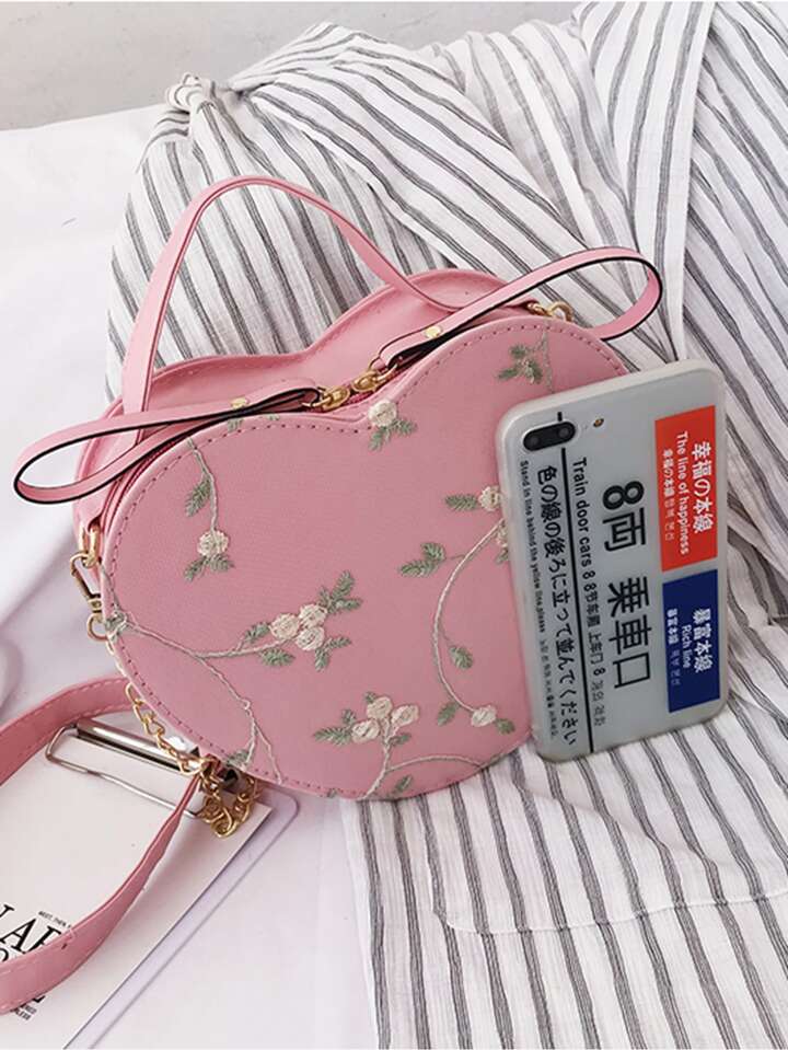 Floral Embroidery Heart Shaped Satchel Bag