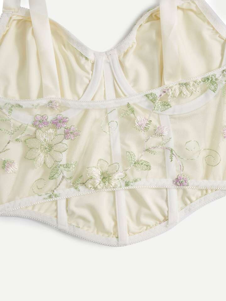 Floral Embroidery Tie Shoulder Cami